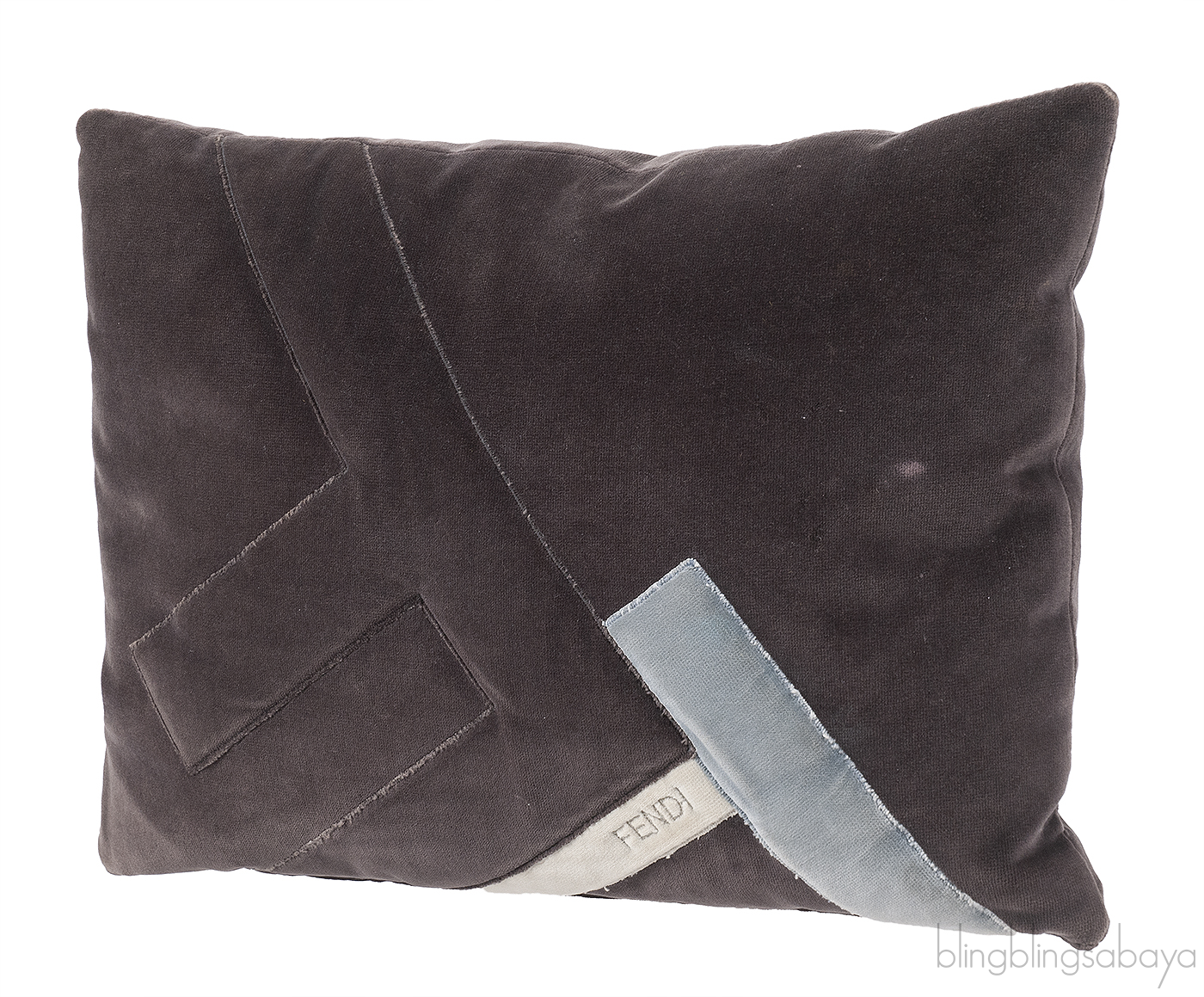 Fendi F Rectangular Grey Velvet Cushion