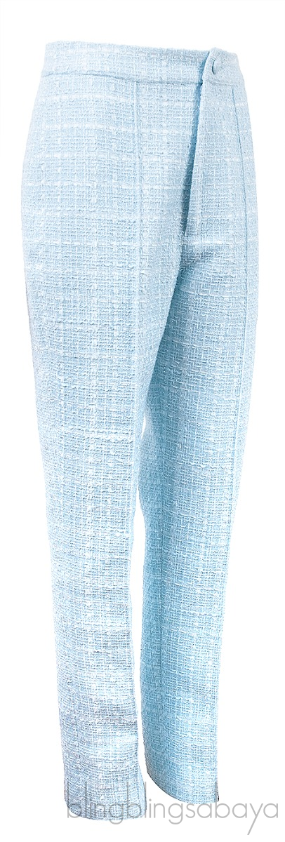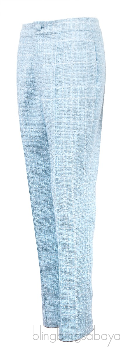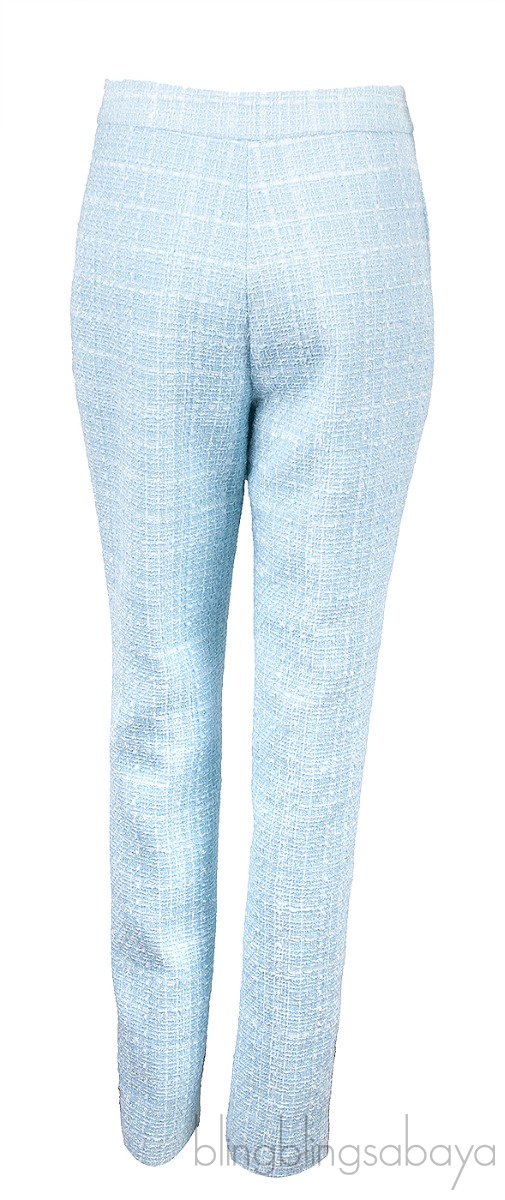 This Francesca Tweed Straight-leg Pants from Huishan Zhang is crafted from 86% polyester, 14% cotton; lining 100% silk in light blue hue. This trouser features a button and concealed zip fastening at front, side pockets and straight leg cut.