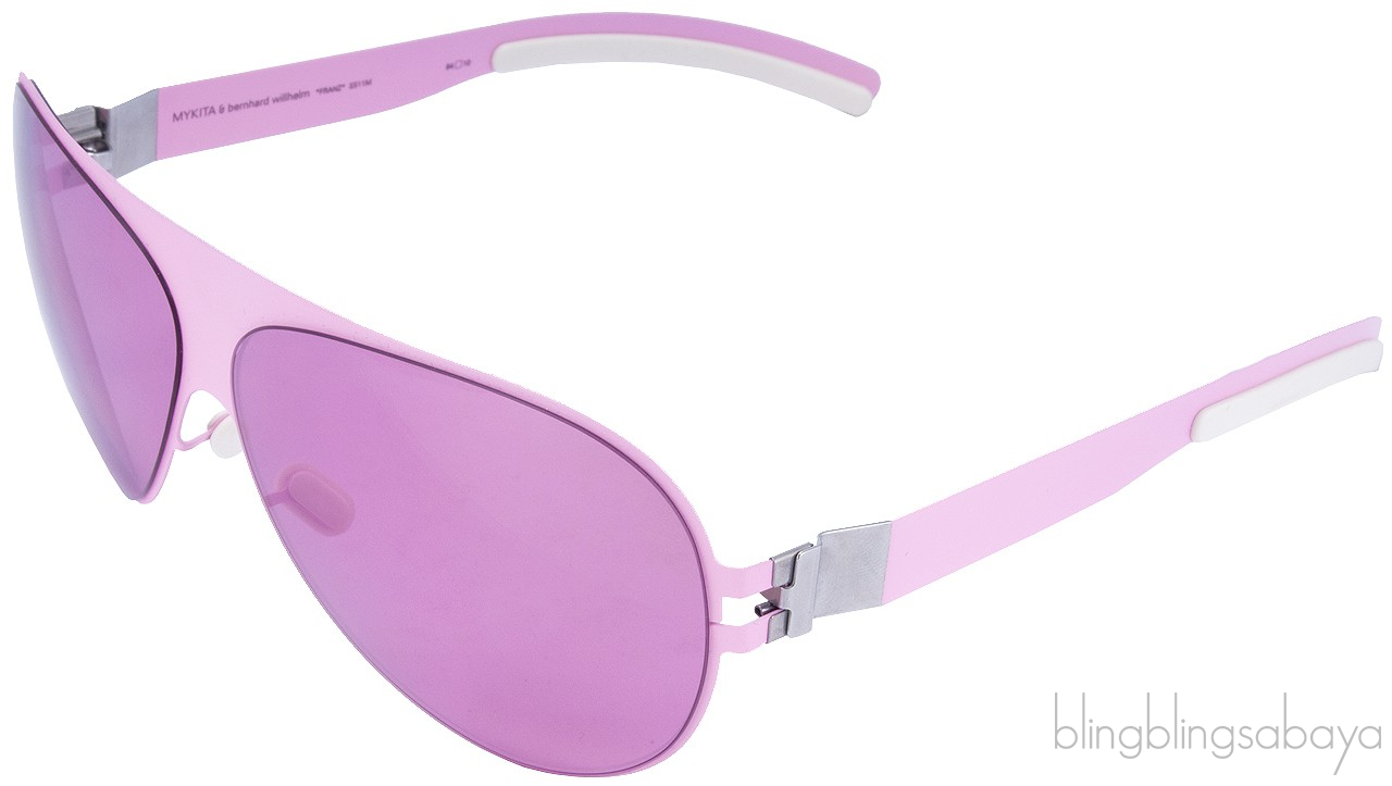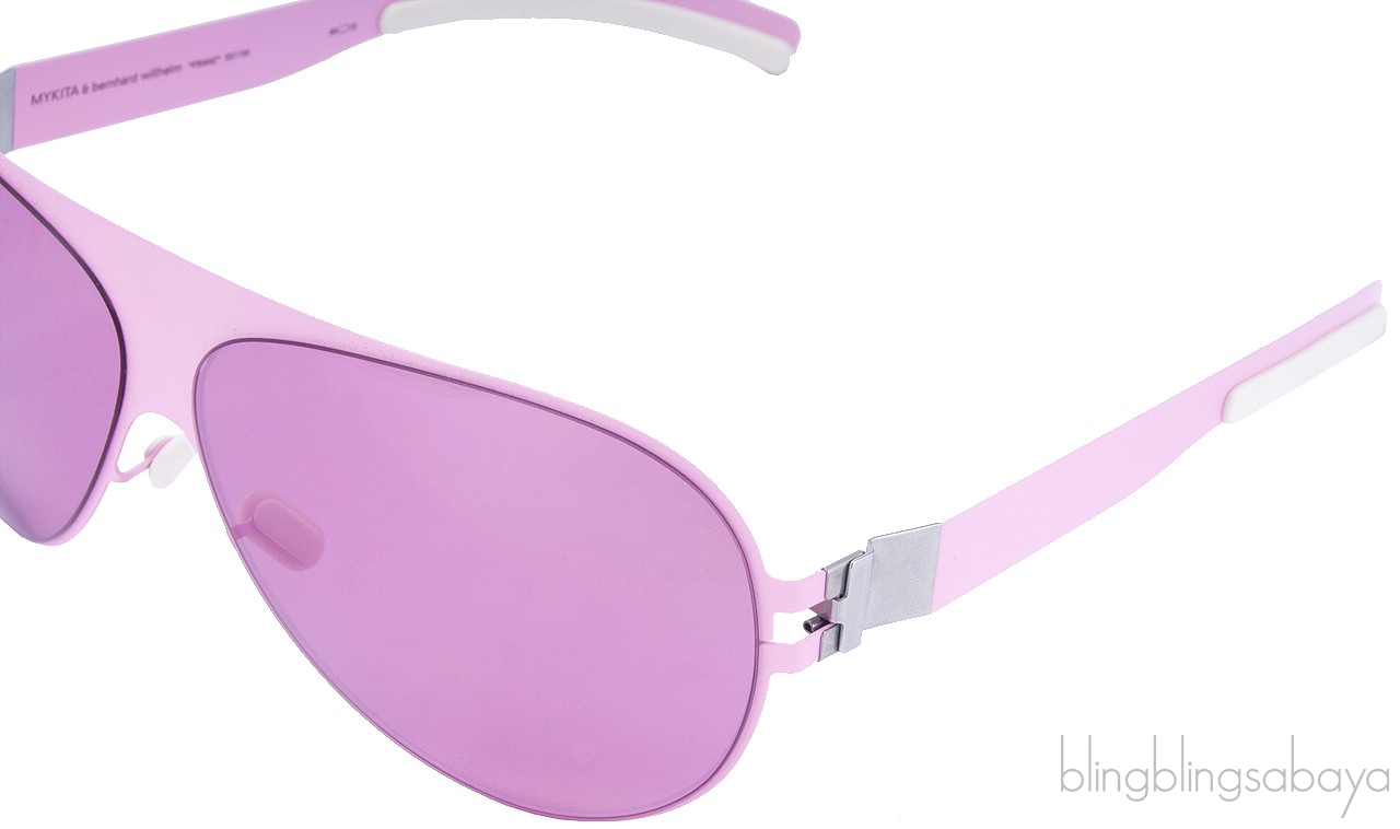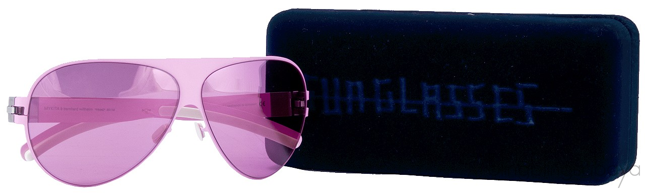 This Franz Aviator Sunglasses from Mykita & Bernhard Willhelm features a super light weight sheet metal aviator frame with pink lenses & adjustable nose pieces. Lens 64 mm / Bridge 10 mm / Arms 140 mm