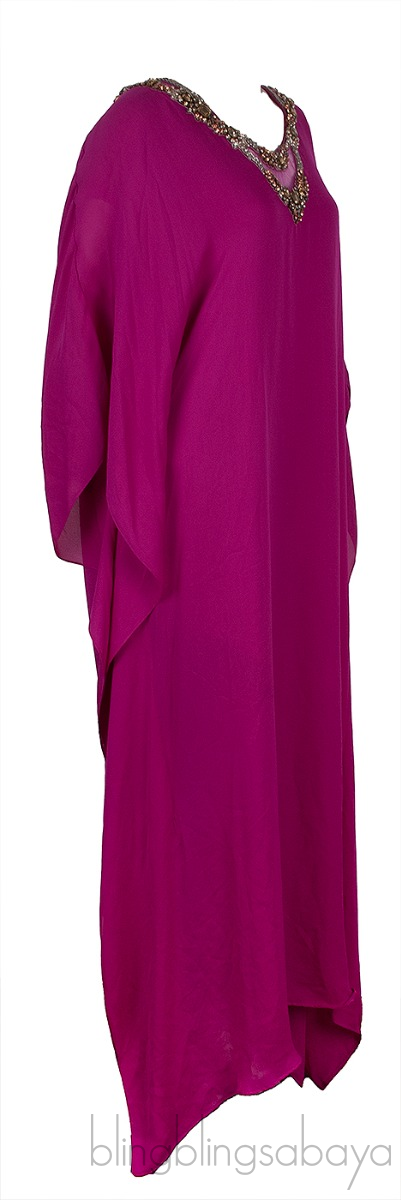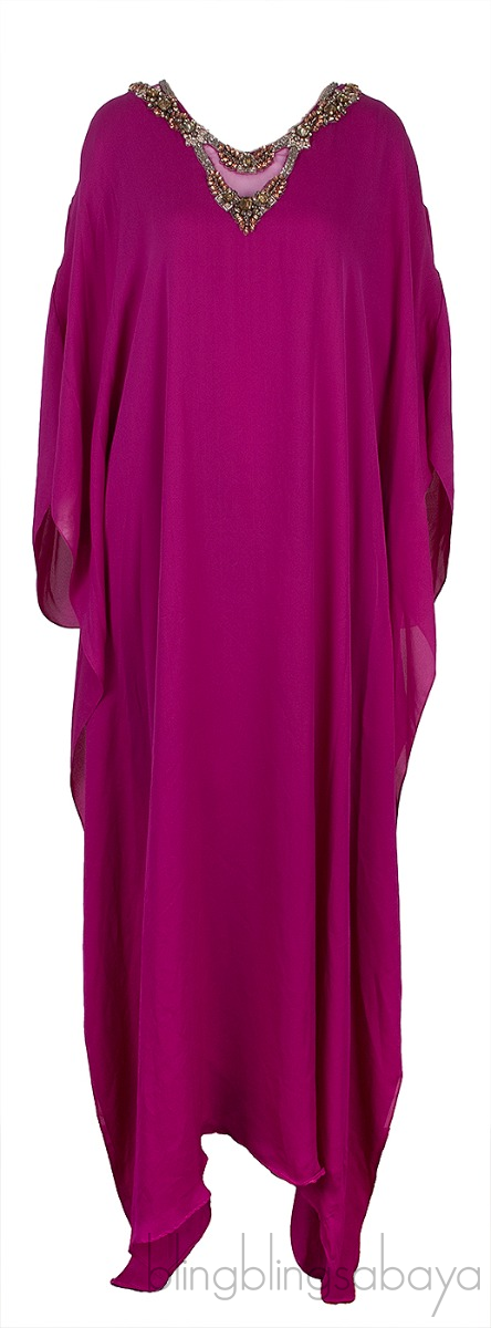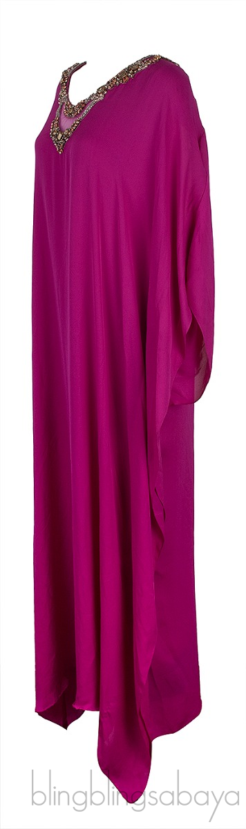 Fuchsia Beaded Kaftan Dress