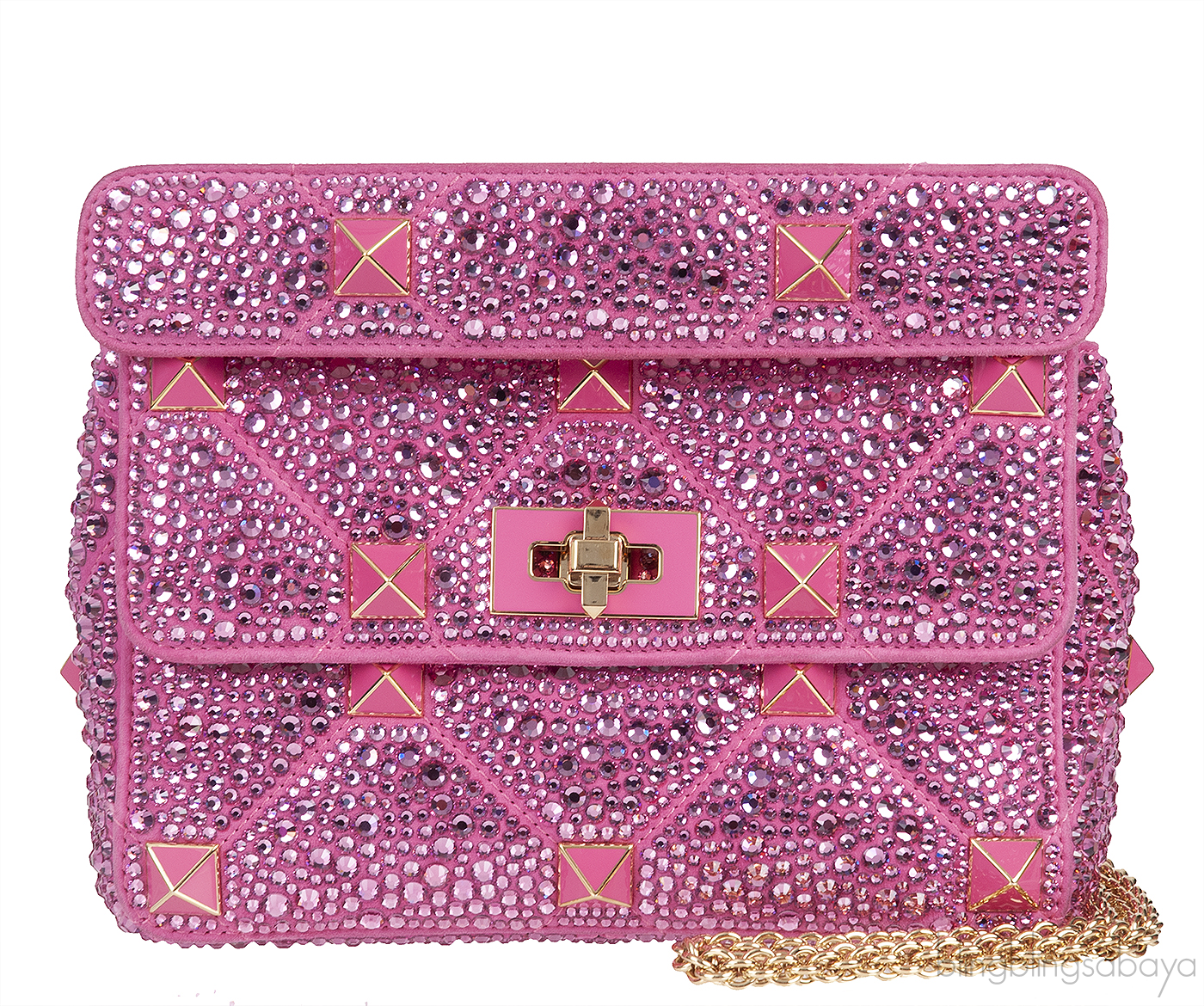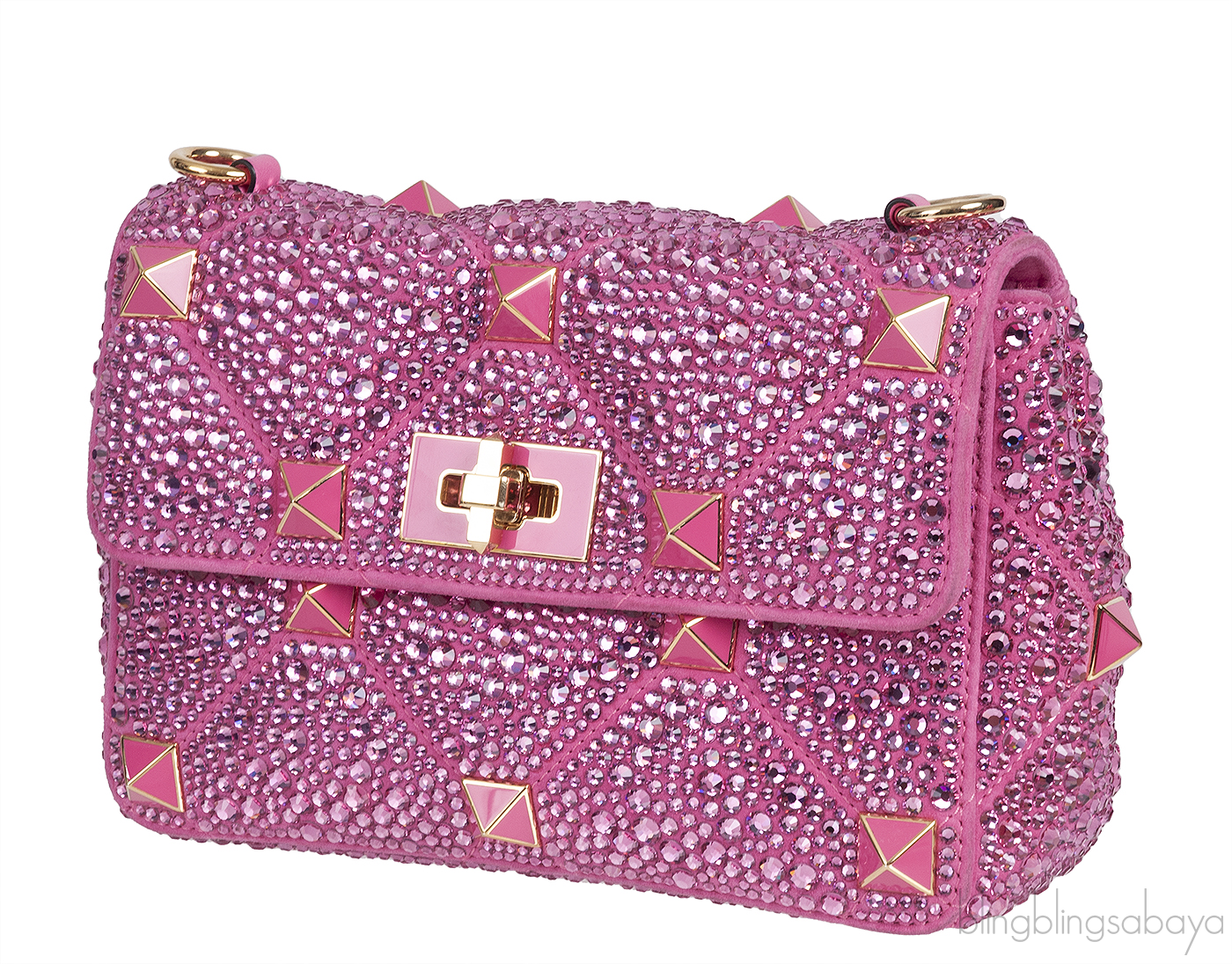 Fuchsia Pink Roman Stud Crystal-embellished Shoulder Bag from Valentino Garavani!
