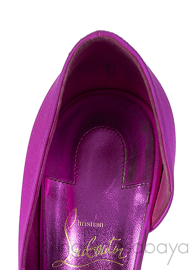 This paid of Fuchsia Satin Iriza Heels from Christian Louboutin is crafted in Fuchsia satin fabric upper with leather lining. These heels has a pointed toe, leather lined insole and red signature leather sole with stiletto heels measuring 100 mm high.