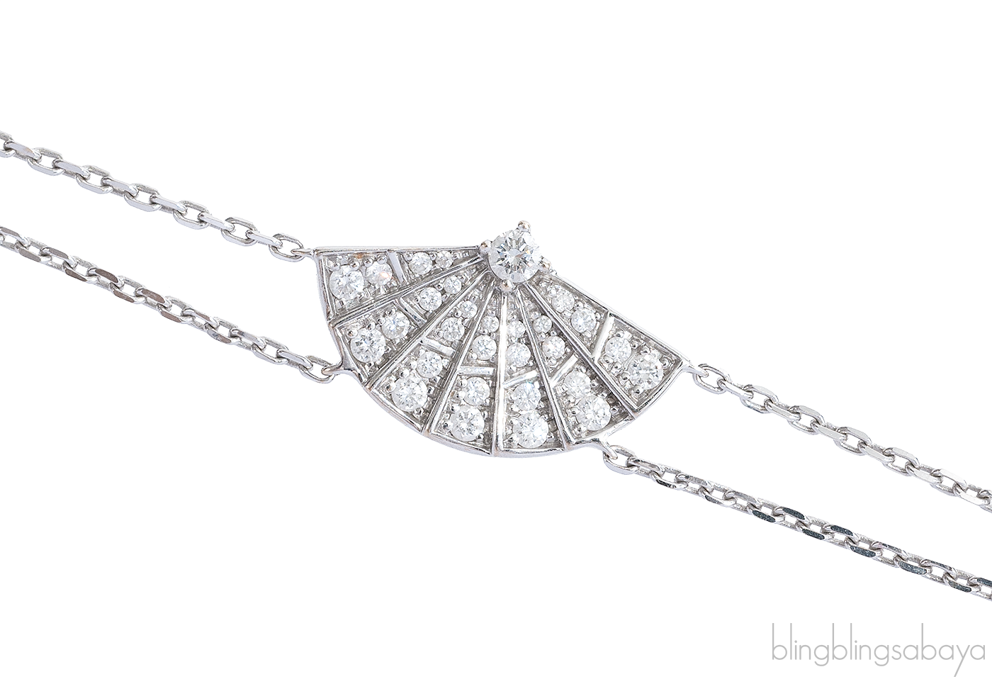 The Garrard Fanfare Symphony Mini Icons Diamond Bracelet is made from 18 ct white gold and adorned with diamonds. Showcasing a more refined take on the classic Fanfare design, the bracelet features radiant diamonds that echo the pleated form of a fan, beautifully set in white gold. The bracelet includes one round diamond weighing 0.06 carat, along with 28 additional round diamonds with a combined weight of 0.26 carats.