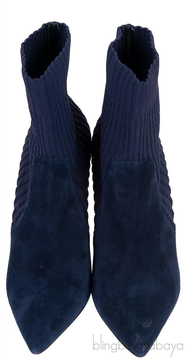Gianvito Rossi Blue Knitted Pointed Toe Ankle Boots