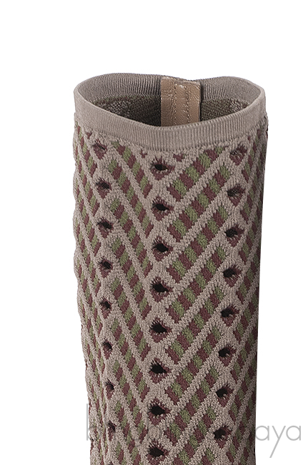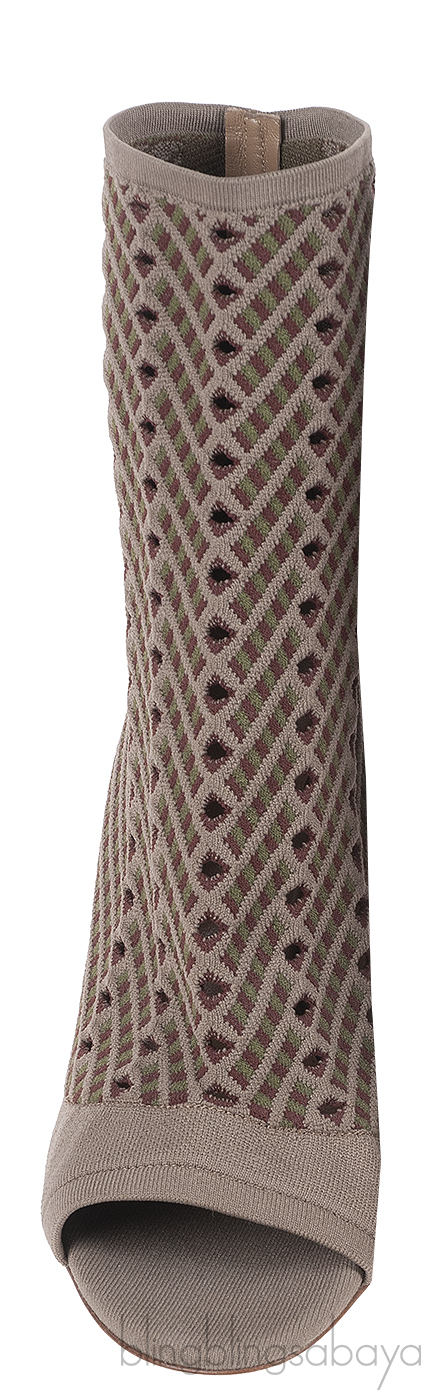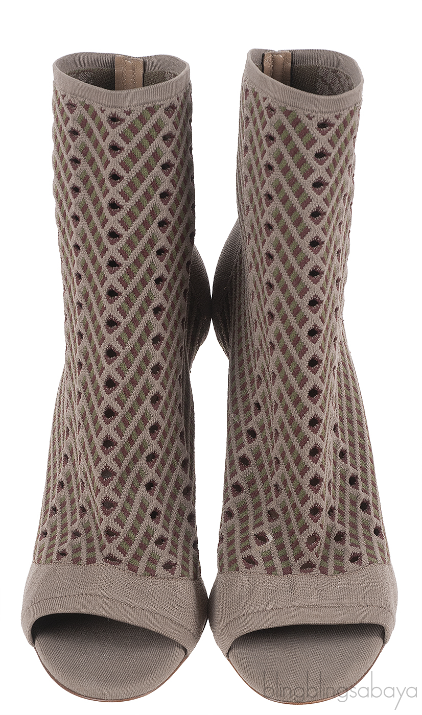 These Gianvito Rossi Rio Perforated Jacquard-knit Ankle Boots features a jacquard knit fabric upper, perforated design, open toe, pull-on style, leather lined sole and heels measuring 105 mm high.