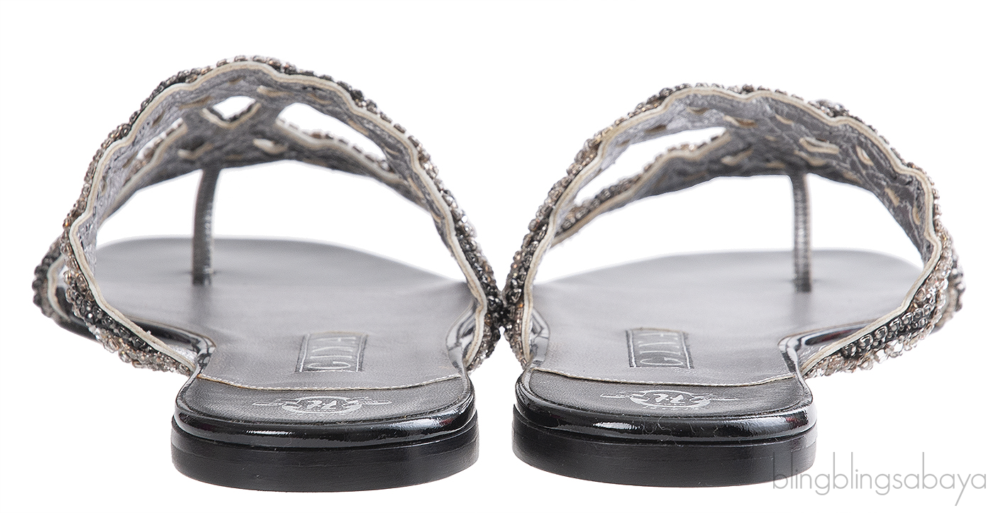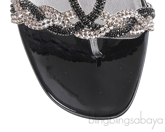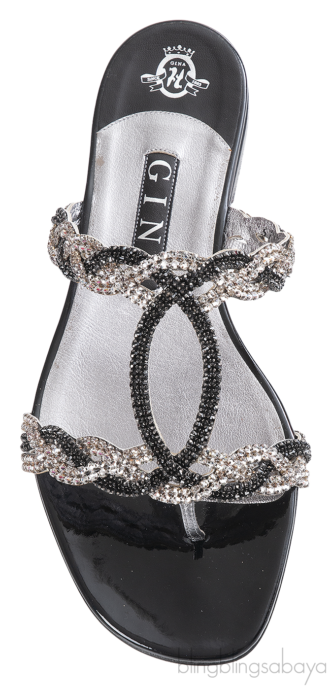 Stunning Isabel Jewelled Flat from Gina is crafted in rich soft black patent leather with metallic silver lining. It has the combination of Swarovski Crystals and BJet hand woven diamante, leather insole lining and sole.