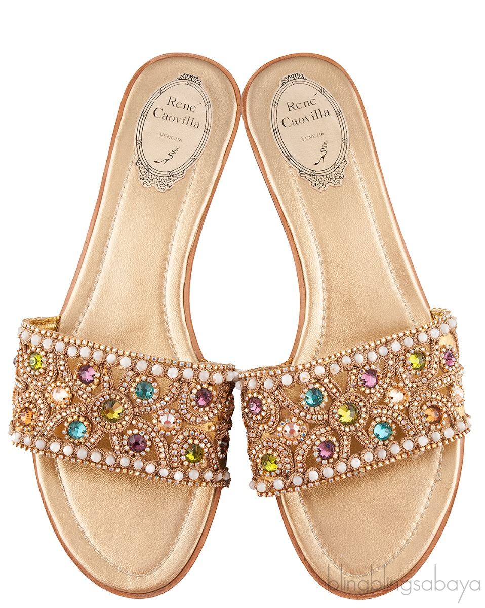 Gold Multi-color Crystal Sandals from Rene Caovilla!