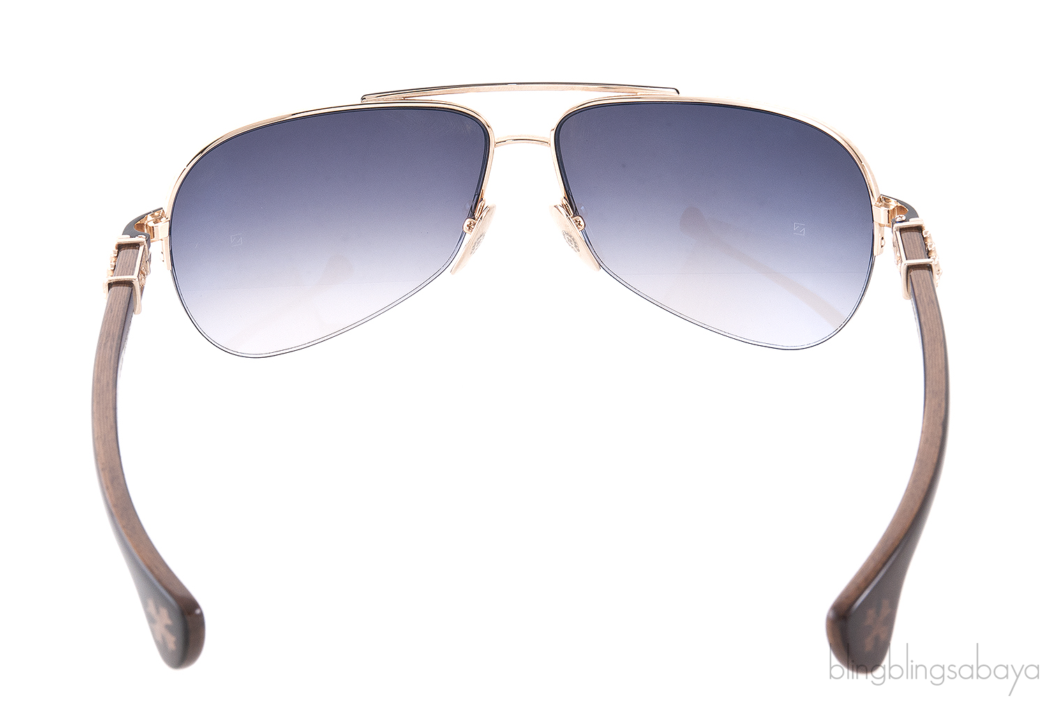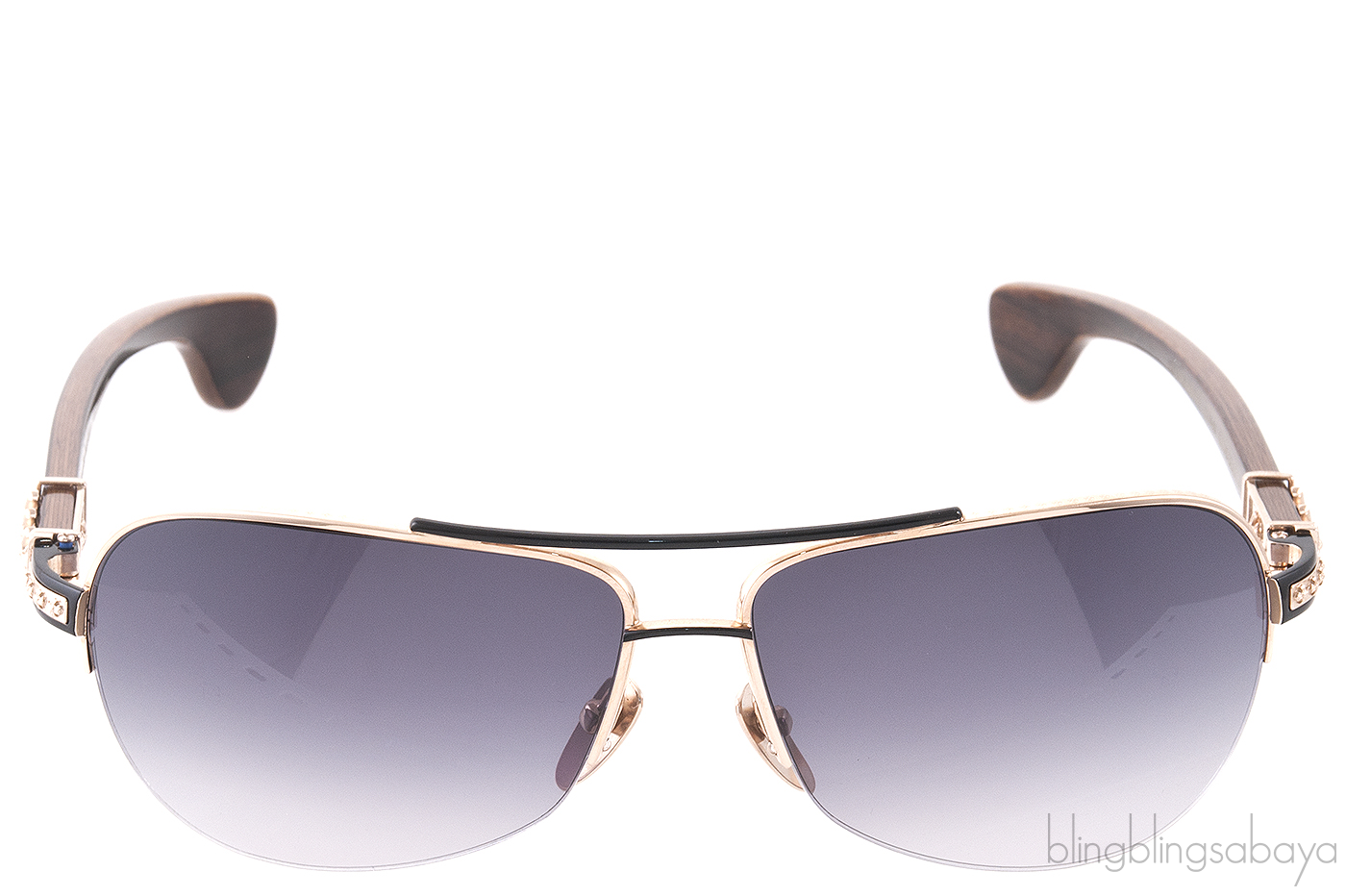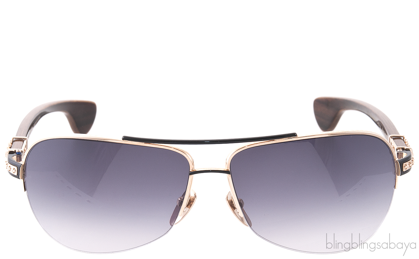This Grand Beast III Sunglasses from Chrome Hearts is features a gold metal frames with with Piano Varnish Temples decorated with metal gold Chrome Hearts logo2s, sweat bars, nose pads and gradient lenses measuring 64 mm / Bridge 14 mm / Arms 126 mm.
