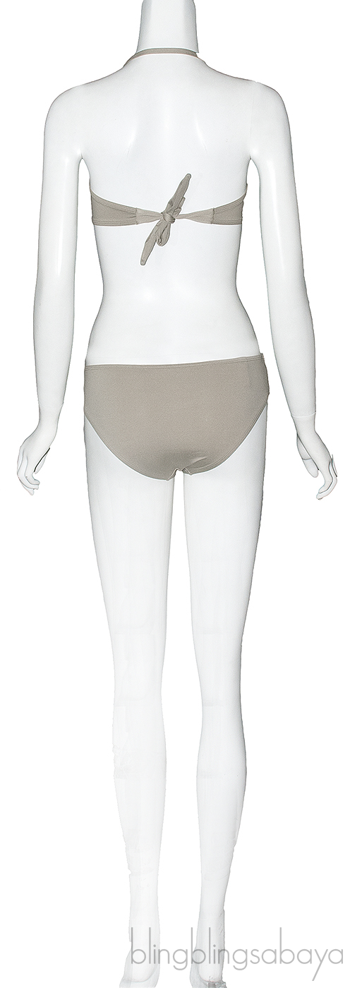 This Gray Bikini & top from La Perla is made of 75% Nylon and 25% Elasthanne. a halter-neck fastening with elegant desgin.