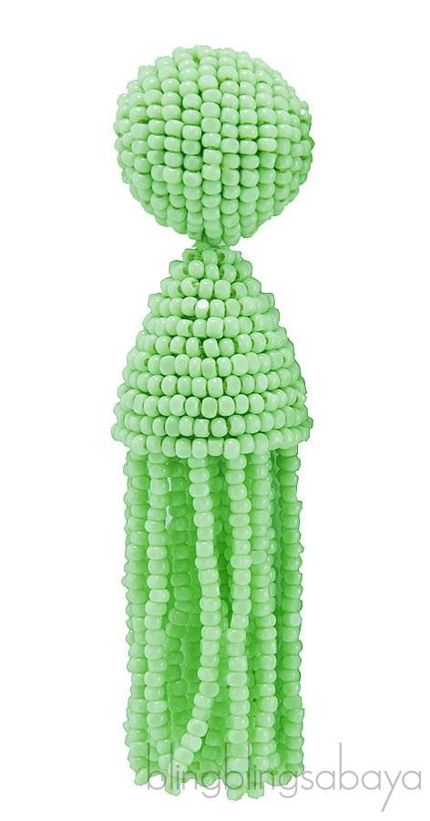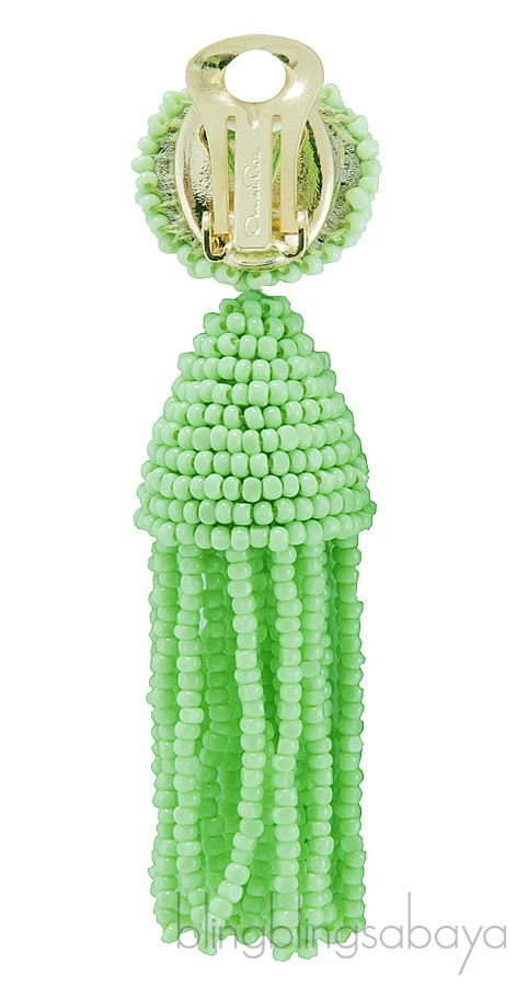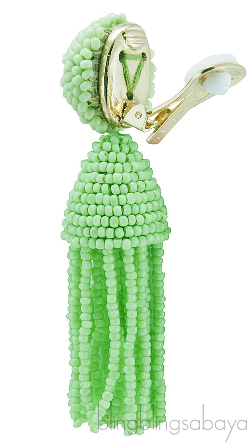 So fun and exciting fashionable Beaded Tassle Earrings from Oscar dela Renta features a tassel earring clip design fully crafted in beads in a refreshing green color.
