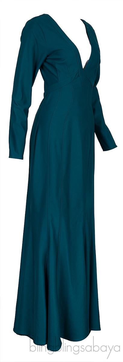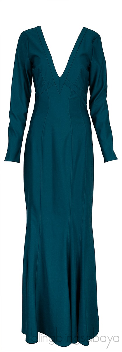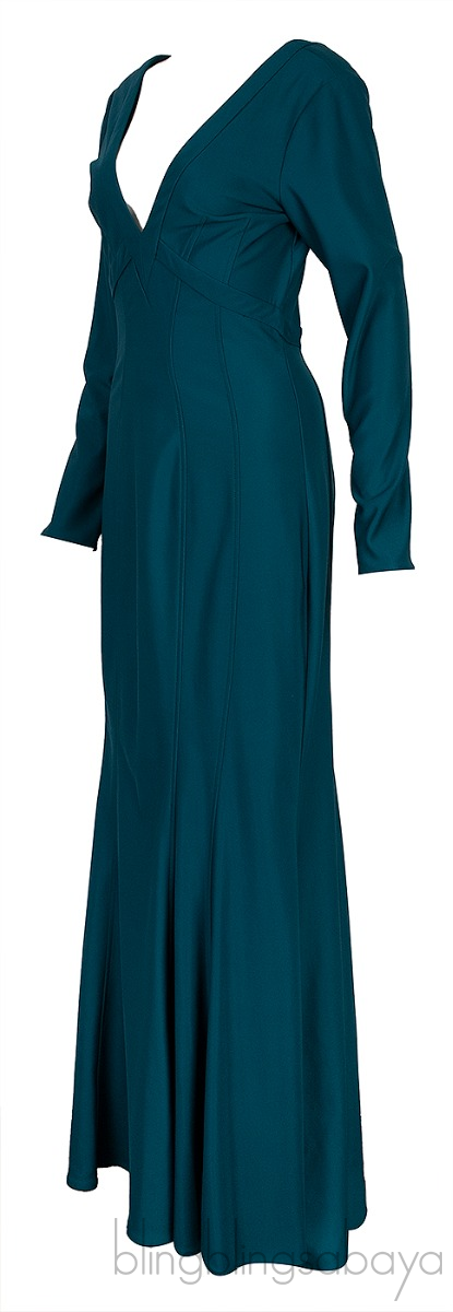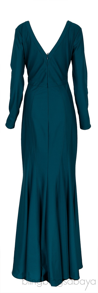 This Green Longsleeve Mermaid Dress from Zac Posen is crafted from 96% Polyester and 4% Spandex in emerald green hue. This dress features a mermaid cut design, long sleeves, plunging v-neckline, zip fastening at rear and maxi length.
