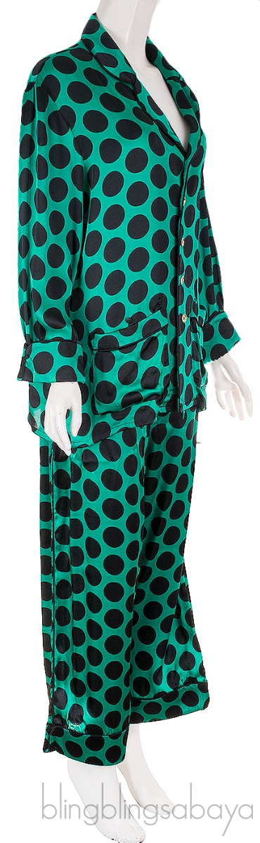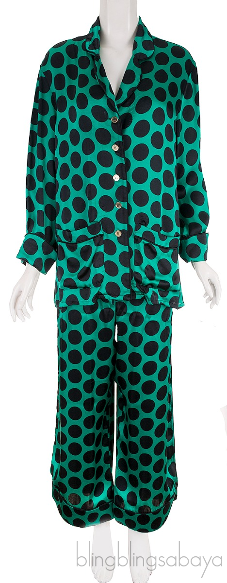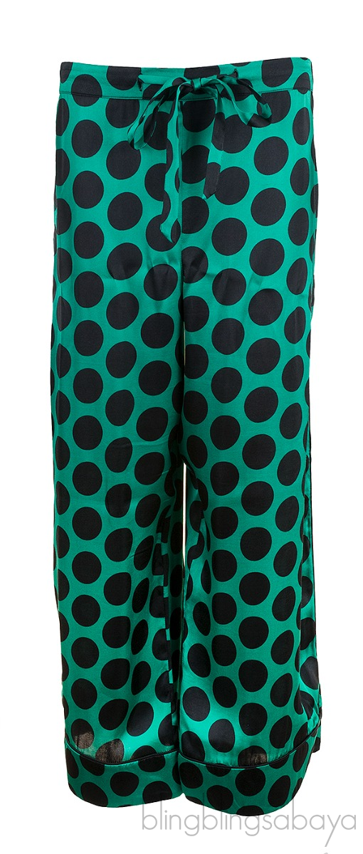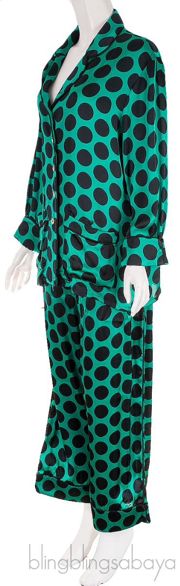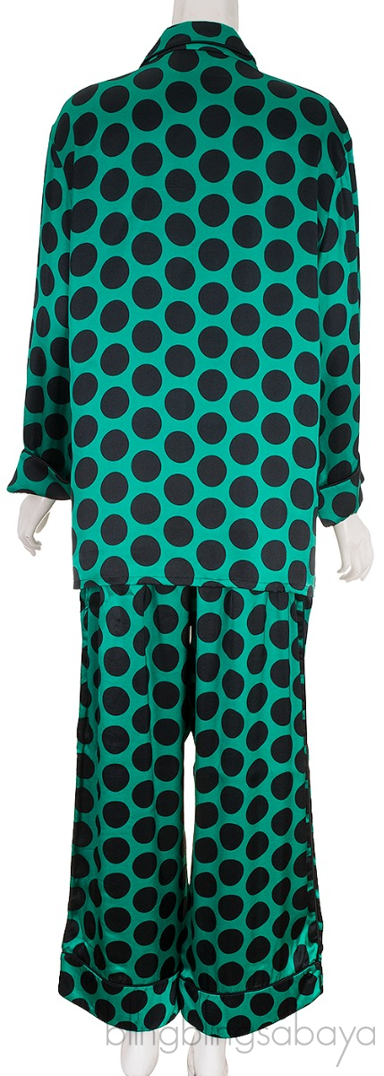 Green Polka-dot Satin Shirt & Pants from Halpern!