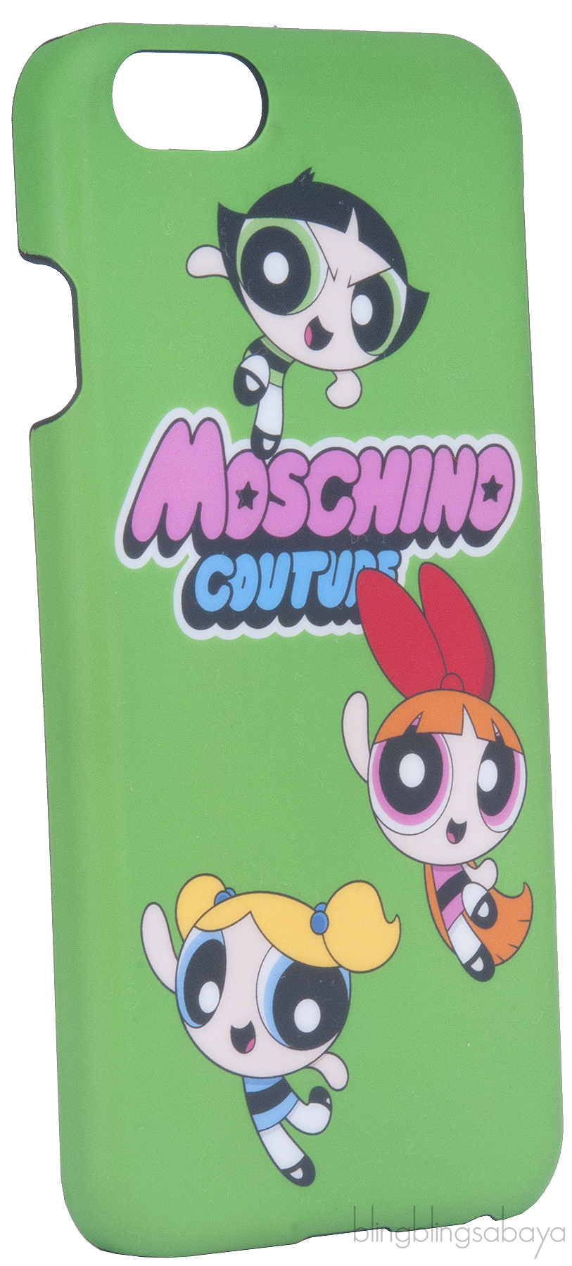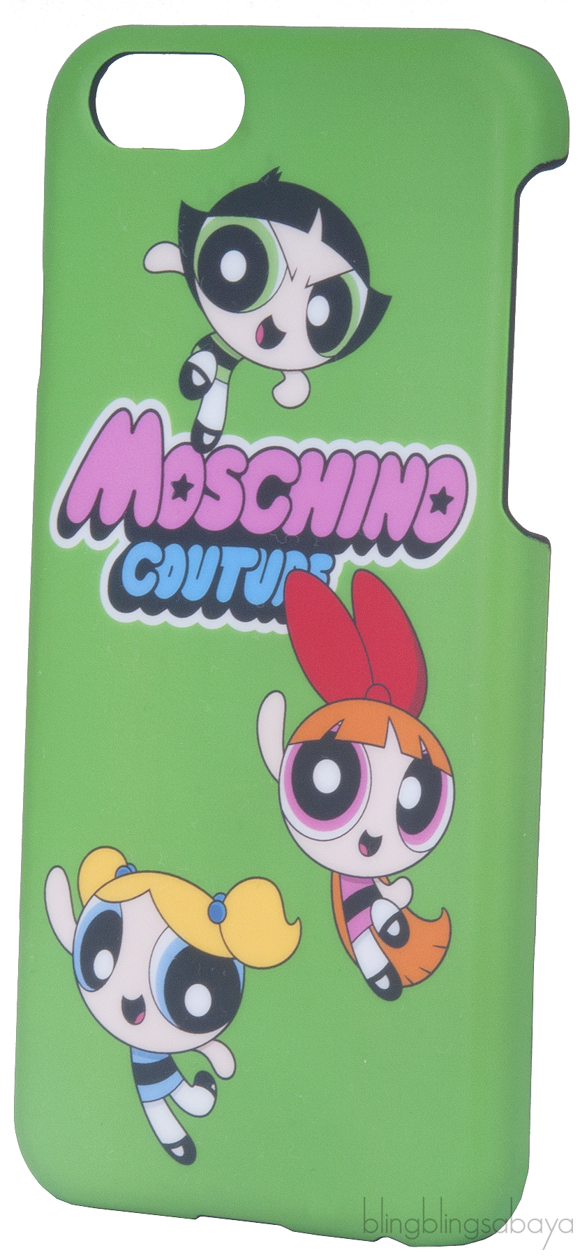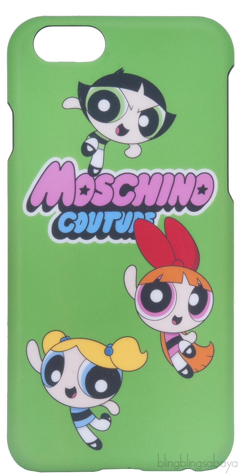 This Green Power Puff iPhone Case from Moschino features a hard case shell designed with Moschimo Couture and Power Puff girls print in multi-color, this accessory will add statement style to your attire. Fits iPhone 6 and iPhone 6S.