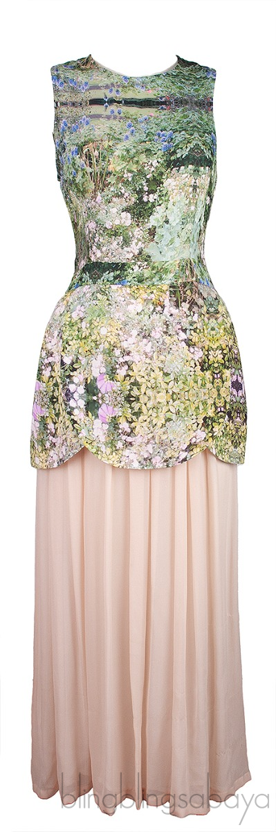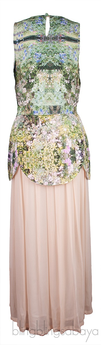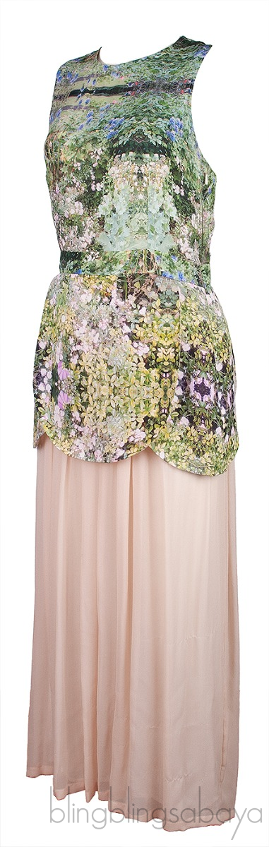 This Green Printed & Beige Maxi Dress from Tata-nake is crafted from 100% Silk fabric. This dress features a printed stop with round neckline, sleeveless, button fastening at rear and has beige pleasted skirt with lining.