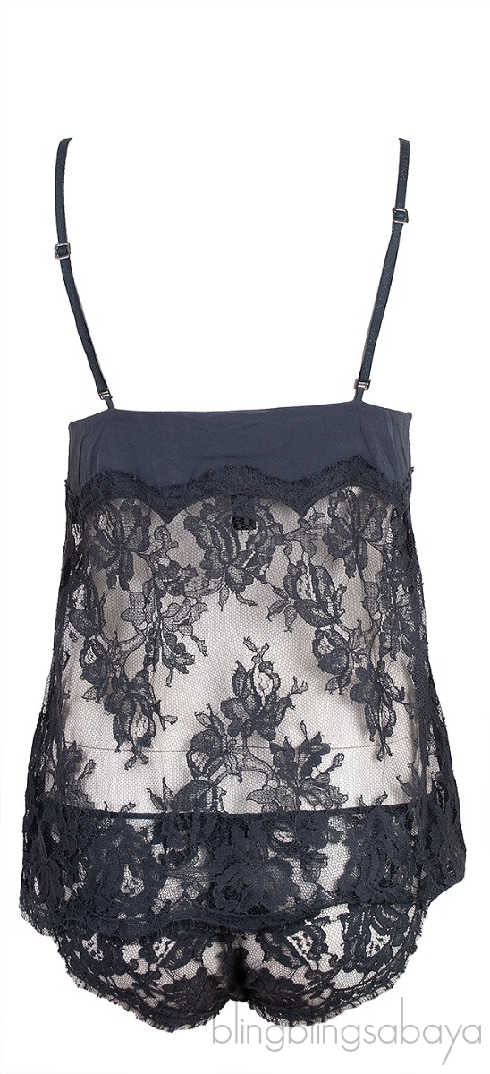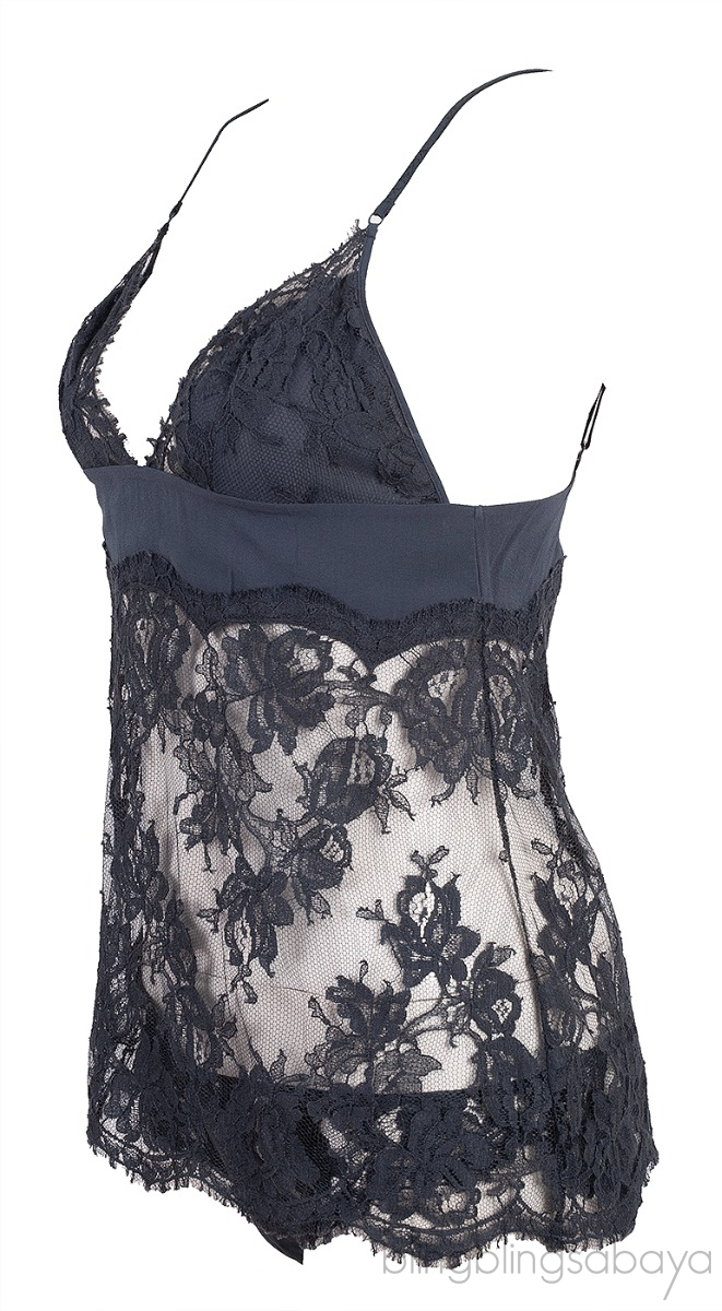 This Grey Floral Lace Camisole Set from La Perla is crafted from 76% Cotton, 24% Polyamide, 9% Silk and 9% Elastane in grey hue. Camisole top features a v-neckline, adjustable shoulder strap, scallop hemline and this comes with underwear.