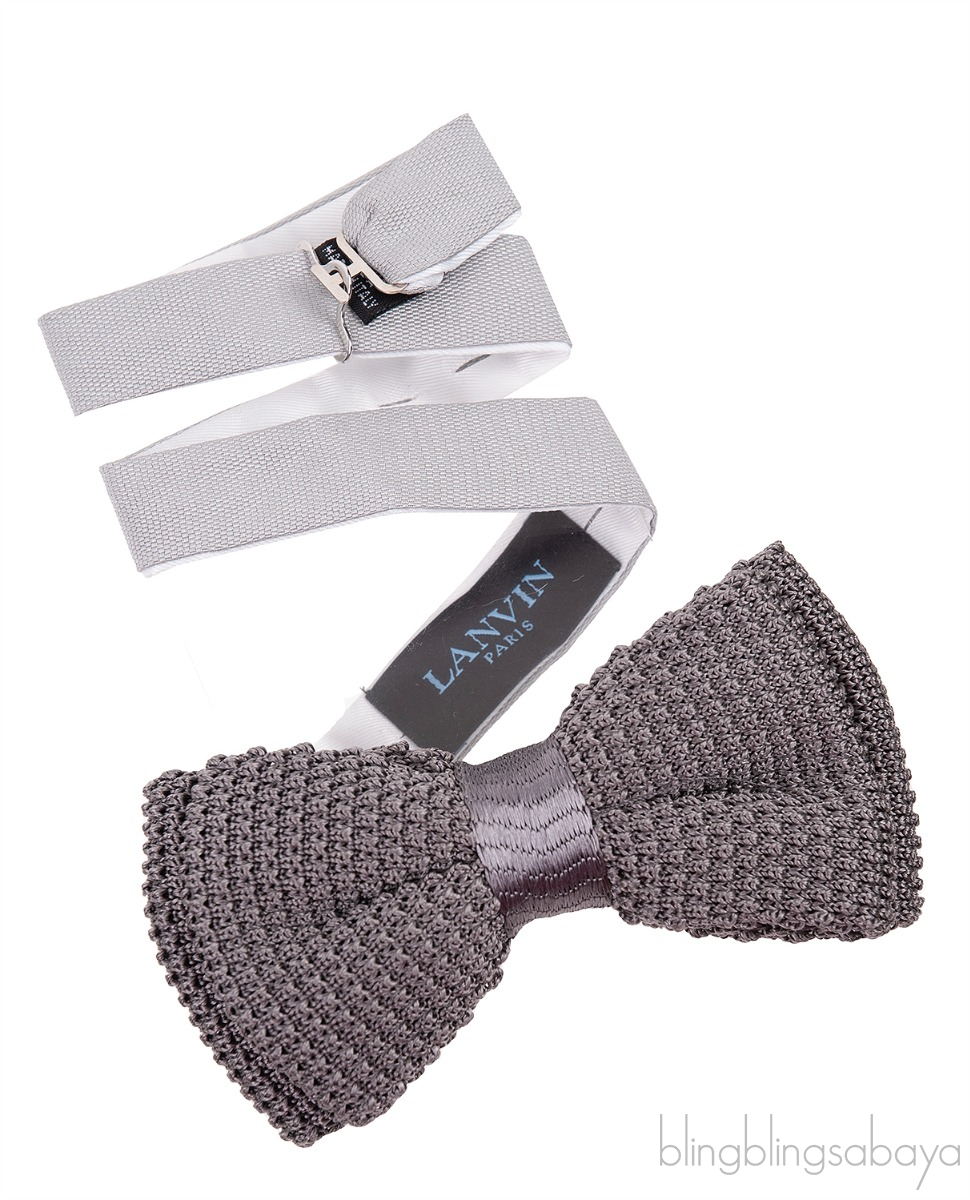 This Grey Knitted Silk Bow Tie from Lanvin is crafted from silk knitted grey fabric featuring a bow design with silver hook.