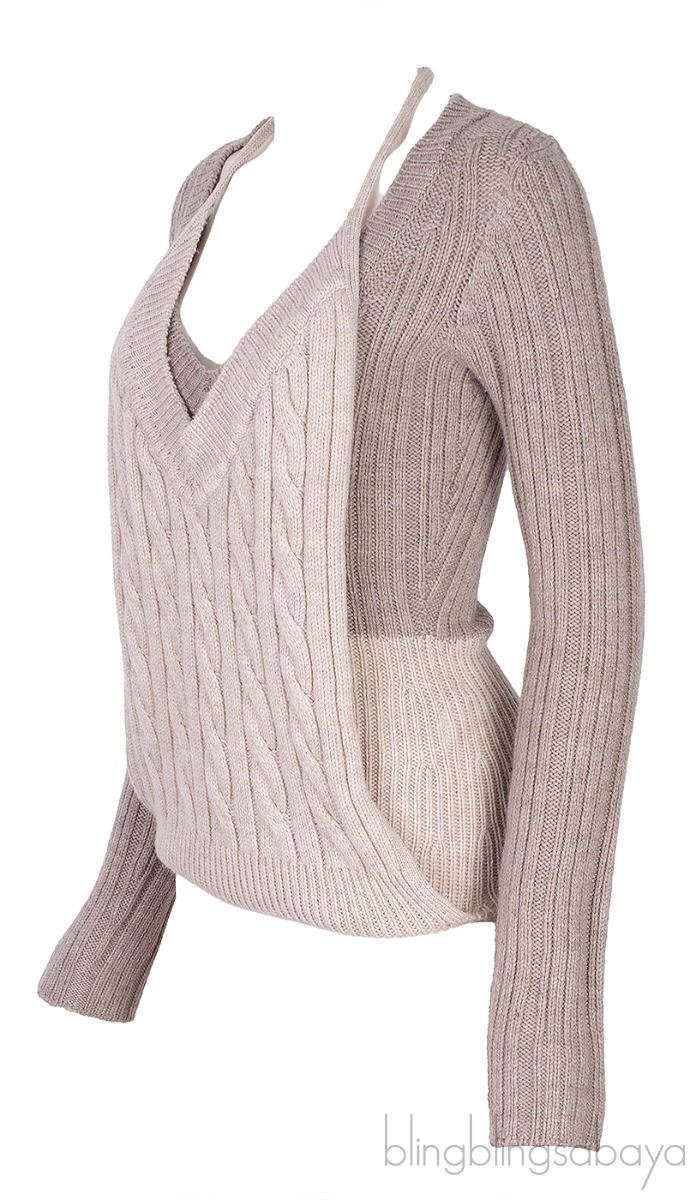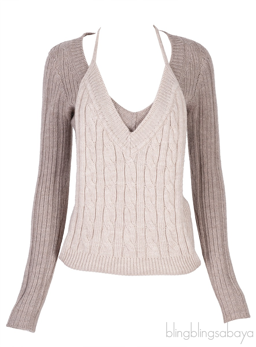 This Grey 'La Double Maille' V-Neck Sweater from Jacquemus is crafted from 100% Merino Wool in two shades in grey. This sweatshirt features a v-neckline, long sleeves and xtended tank-top style panel with halter shoulder straps at front hem for alternate styling