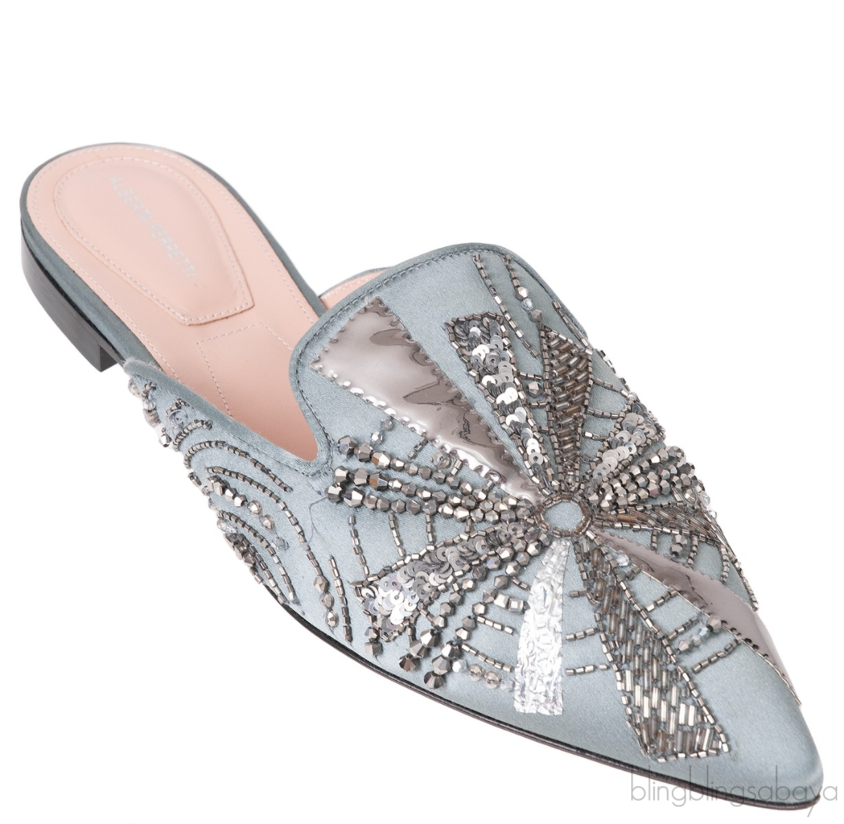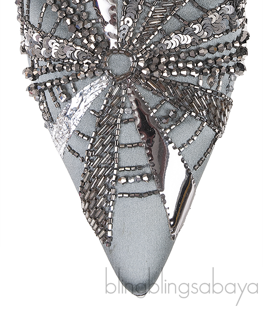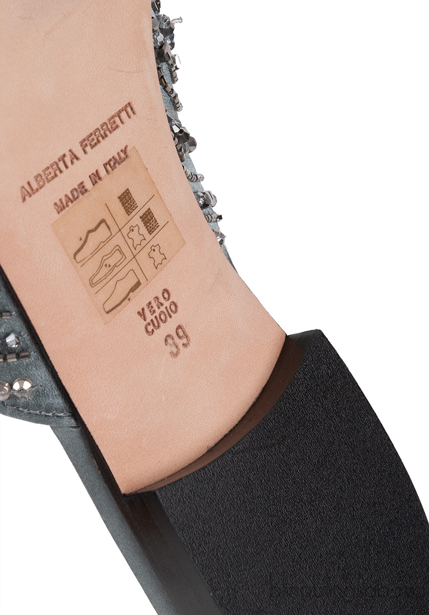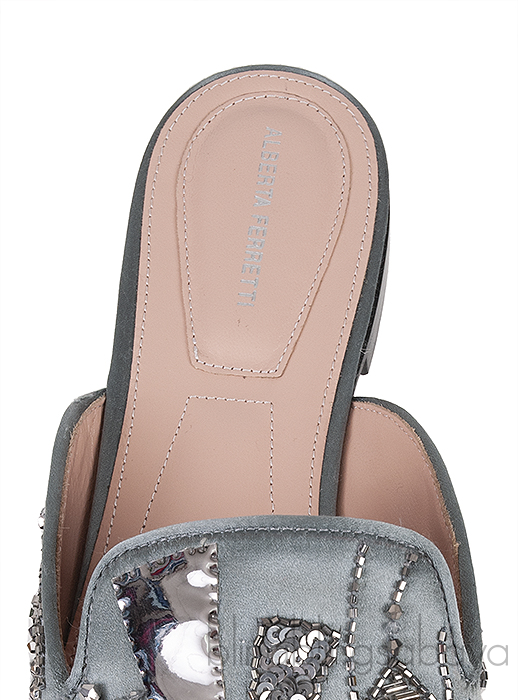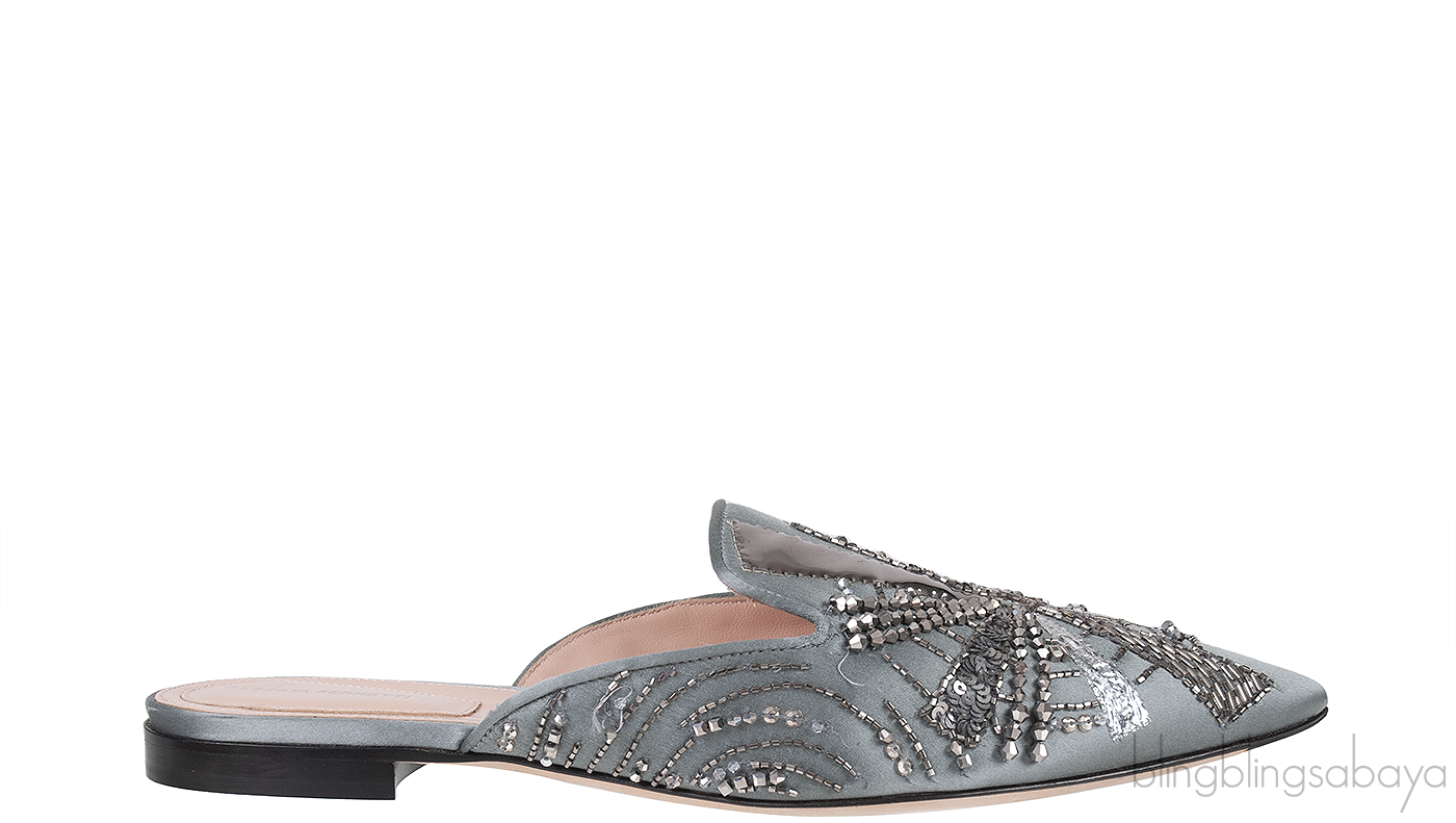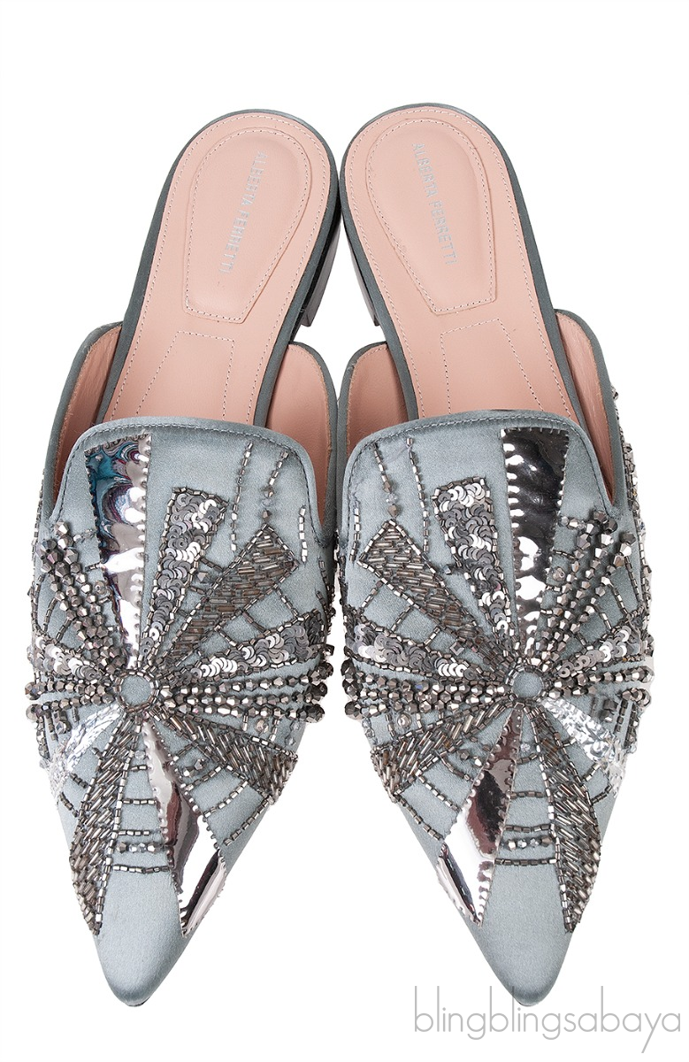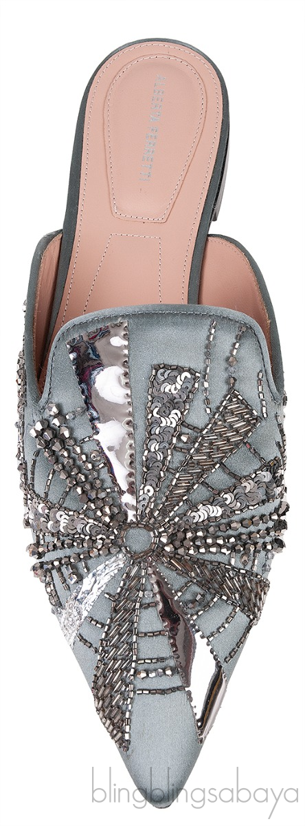 Grey Satin Sequin Embellished Pointed Toe Mule from Alberta Ferreti!