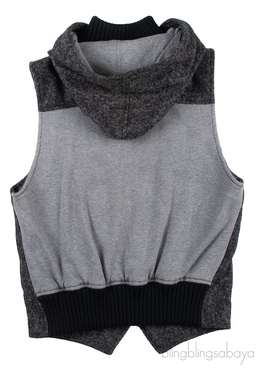 This Grey Sleeveless Men's Hoodie from Dolce & Gabbana is crafted from 5% Acetate, 35% Cotton, 10% Nylon, 45% Alpace and 5% Wool in grey hue. This Blazer features a ribbed black collar, hoodie with drawstring fastening, zipper at front, four pockets, light grey fabric at back with ribbed hemline.