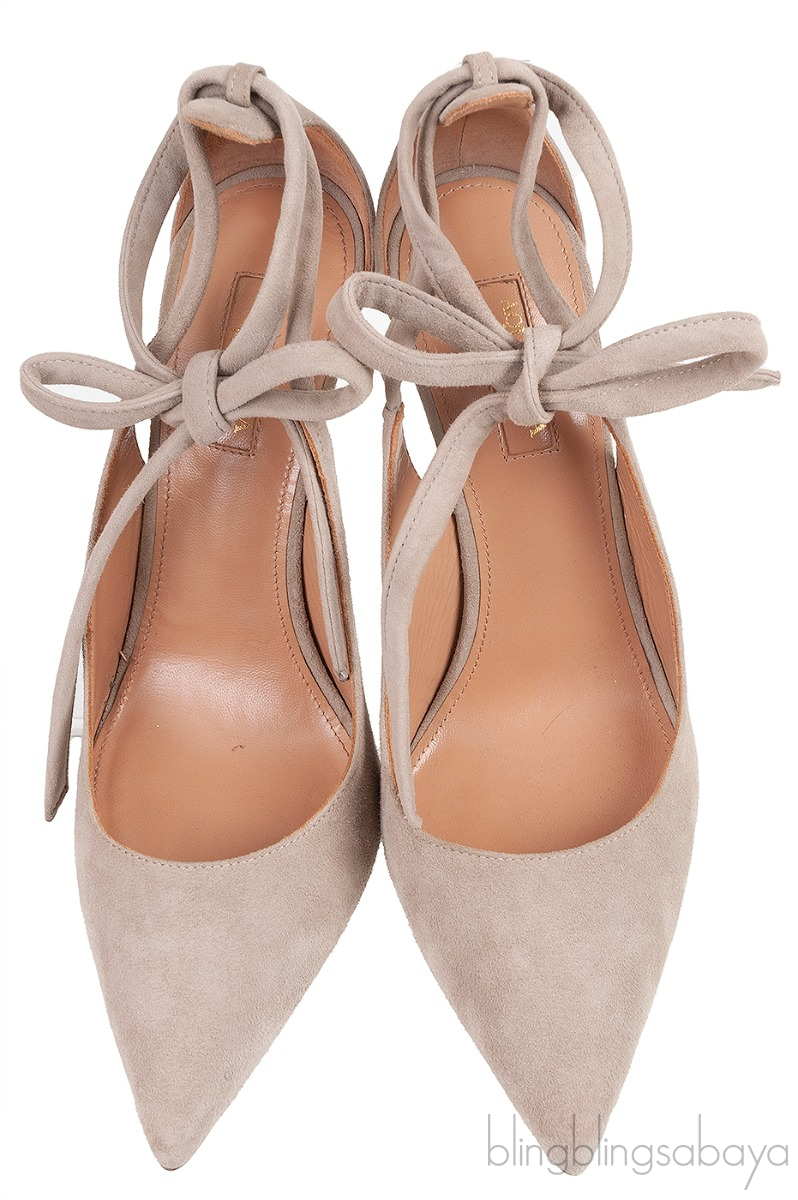 Grey Suede Pointed Toe Slingback Heels from Aquazzura!