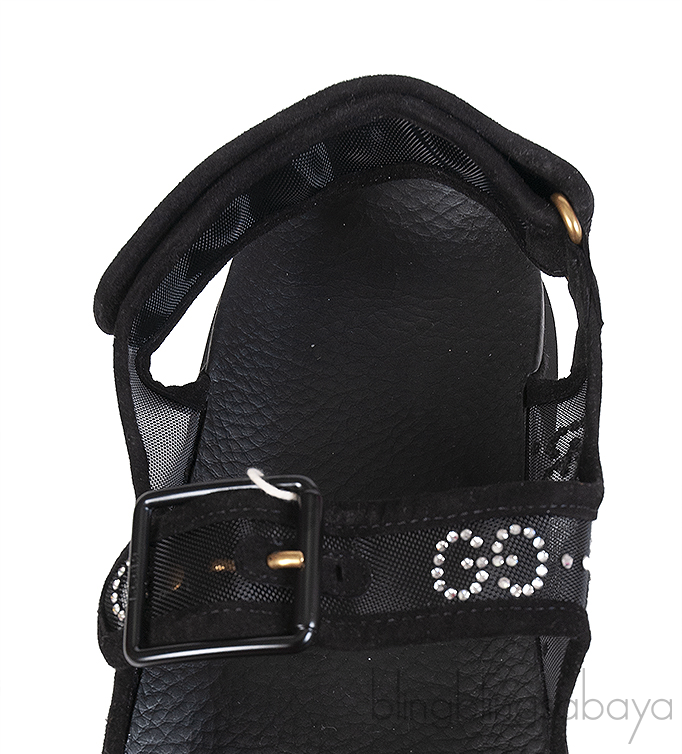 Gucci Black Crystal Embellished Monogram Pattern Sandals!