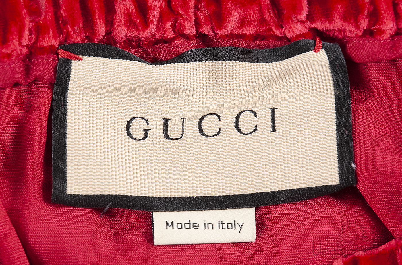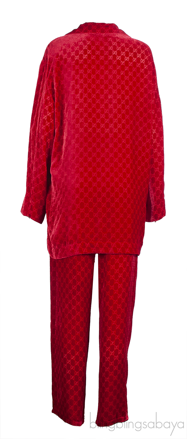 Gucci Red GG Devore Velvet Shirt & Wide Leg Trouser