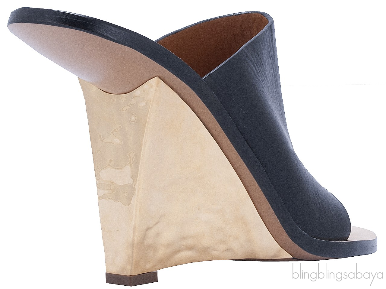 Hammered Gold Tone Wedge Mule