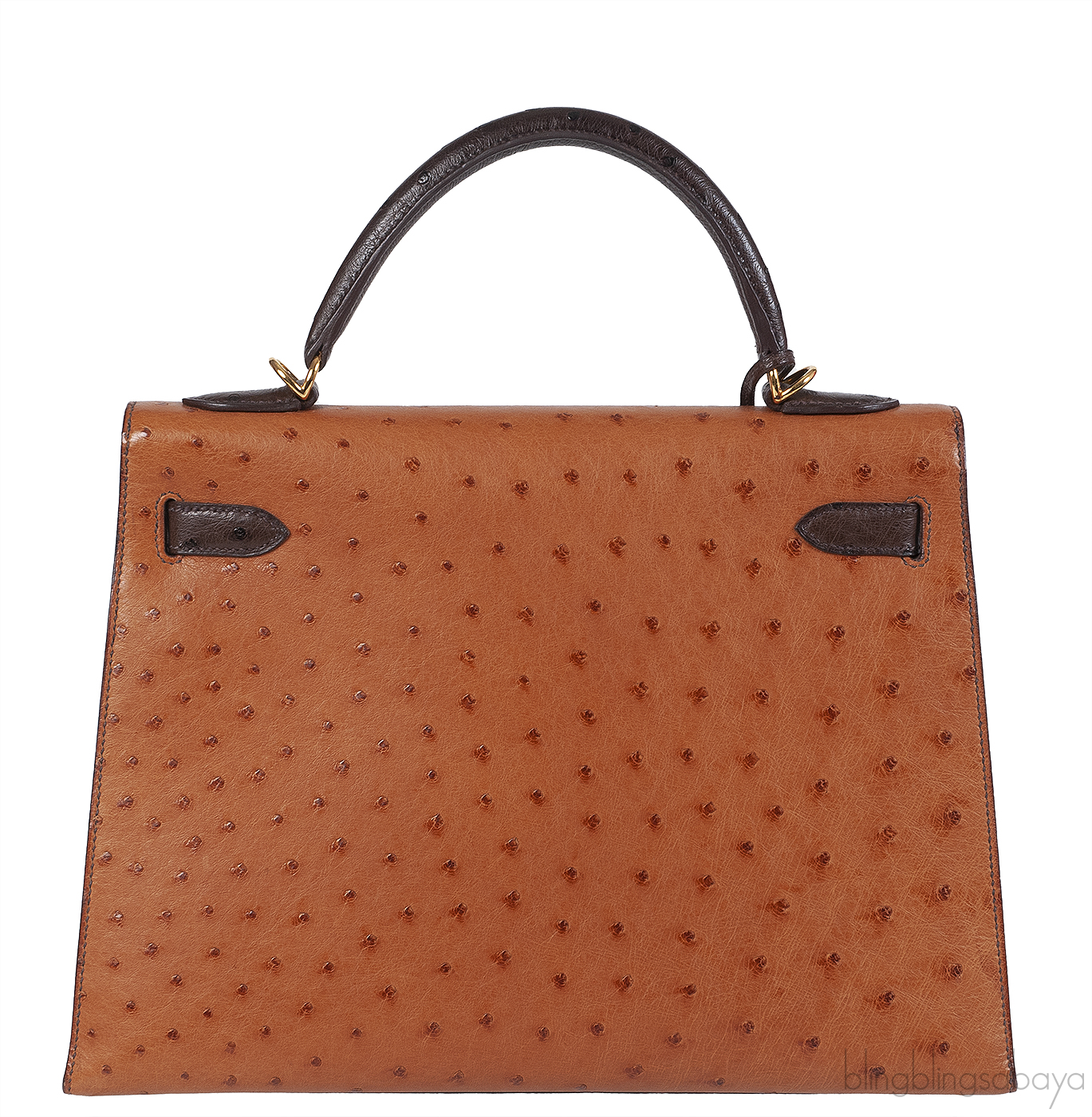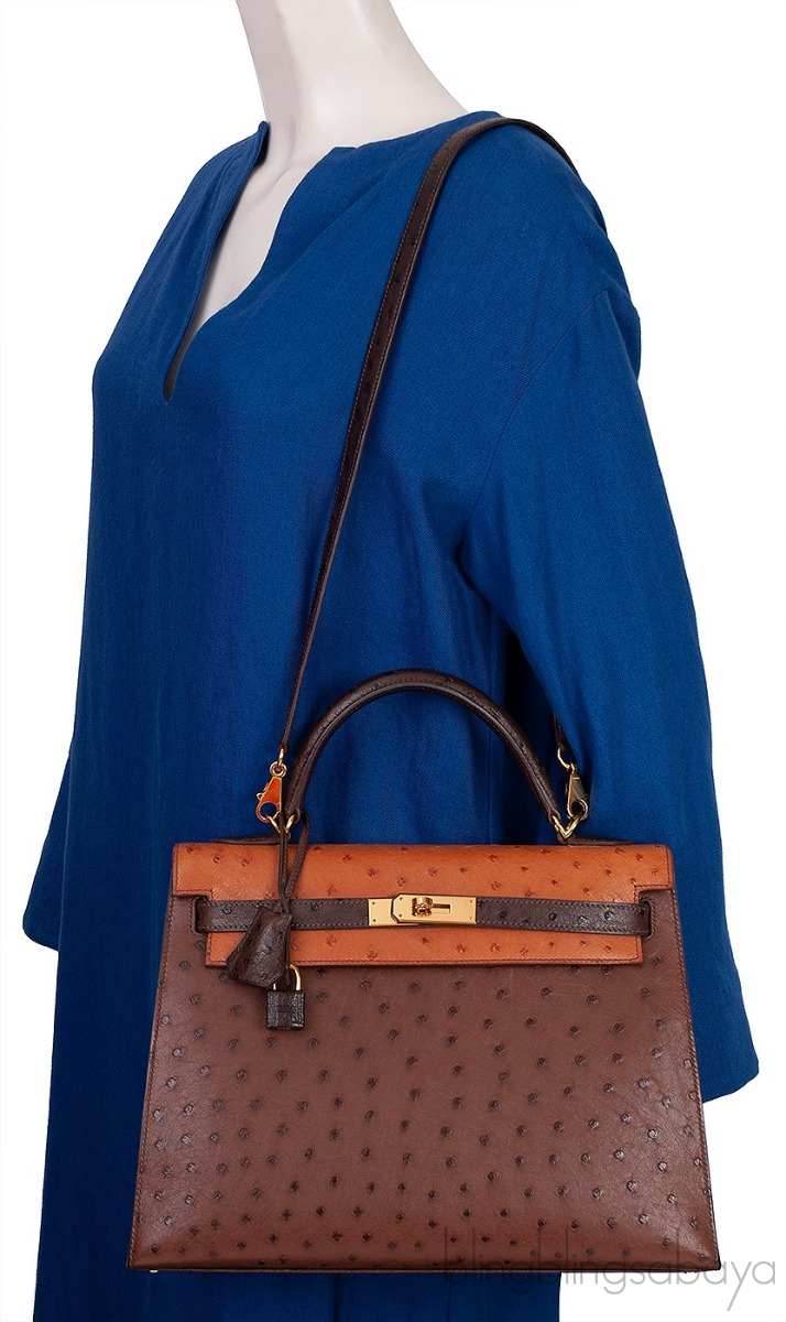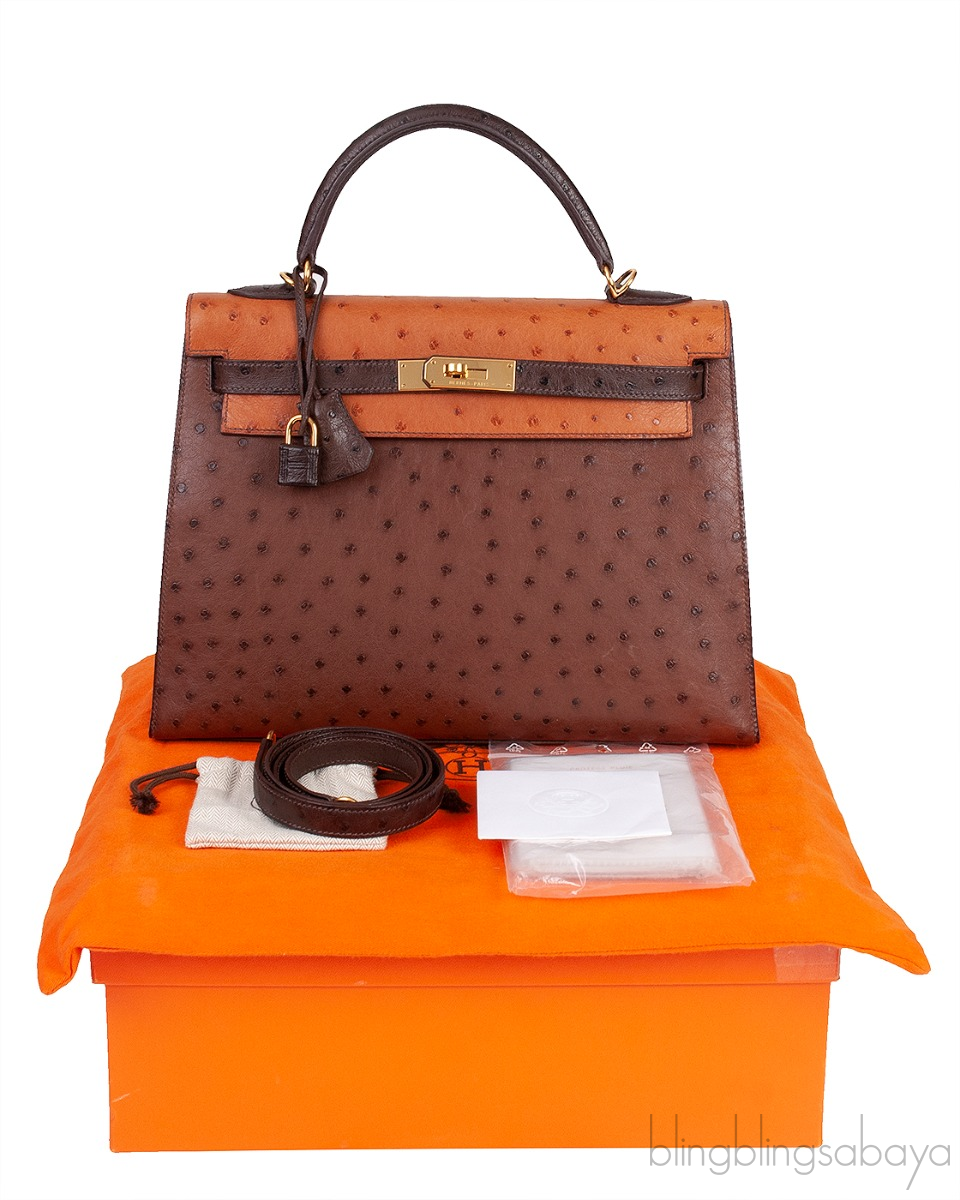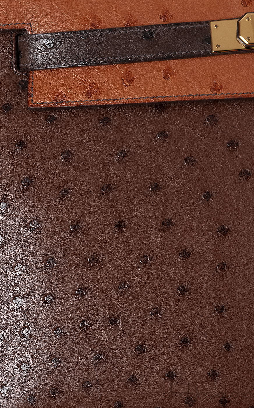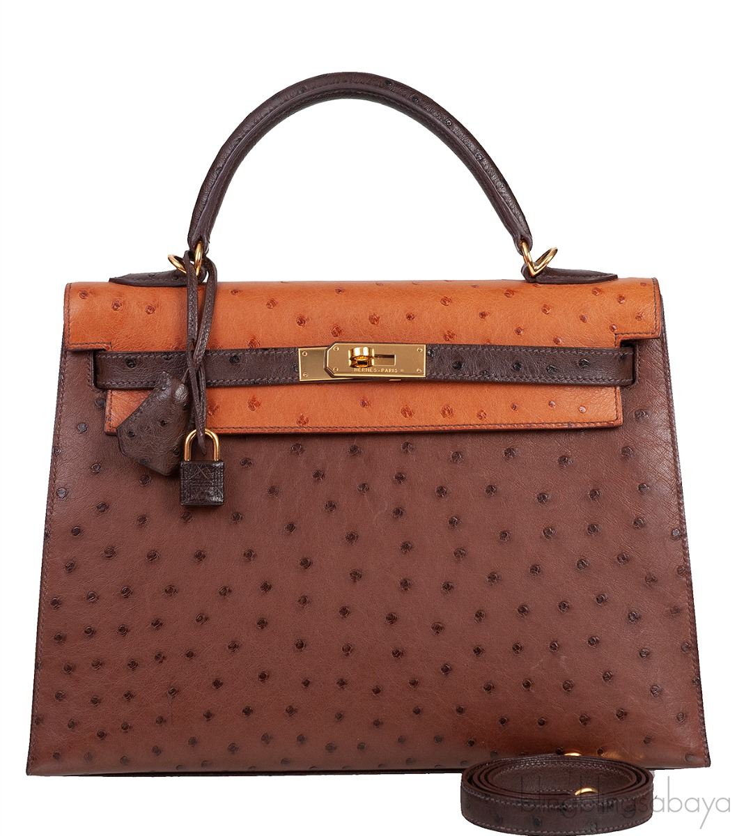 Hermes Kelly 32 Chocolate Natural and Dark Brown Ostrich GHW