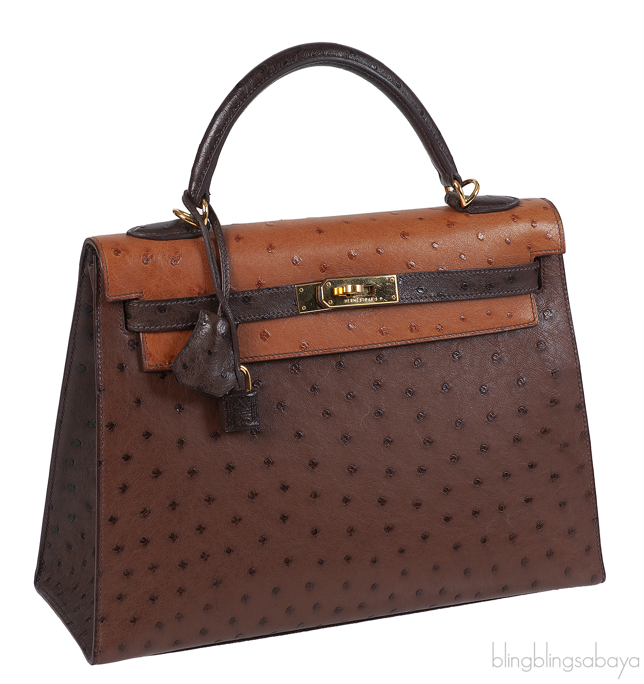 Fabulous Kelly 32 Chocolate Natural and Dark Brown Ostrich GHW from Hermes!