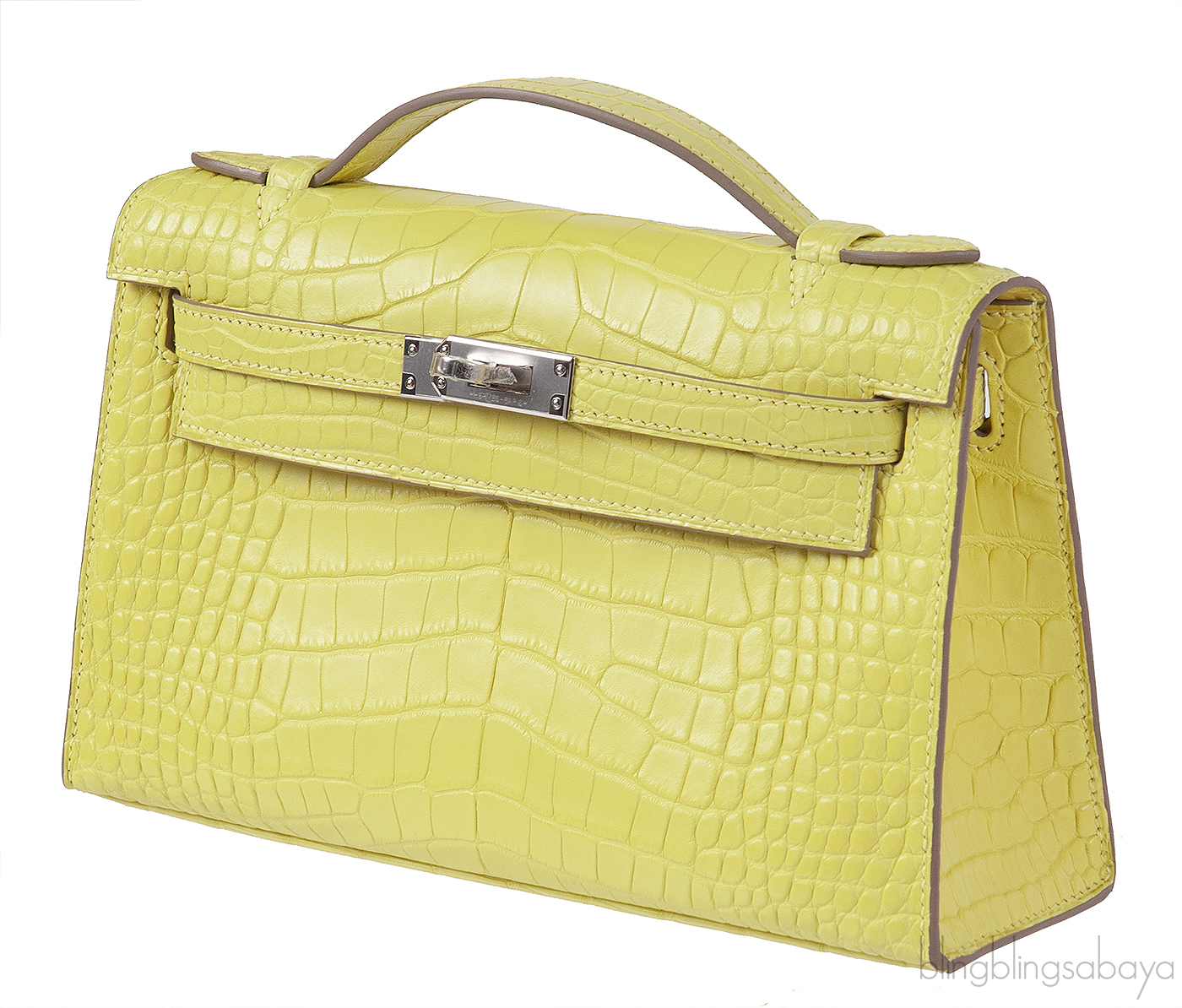 HERMES Kelly Pochette Matte Lime Alligator PHW