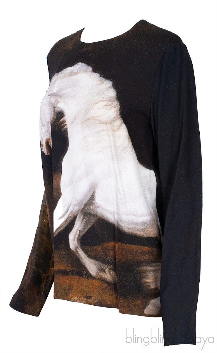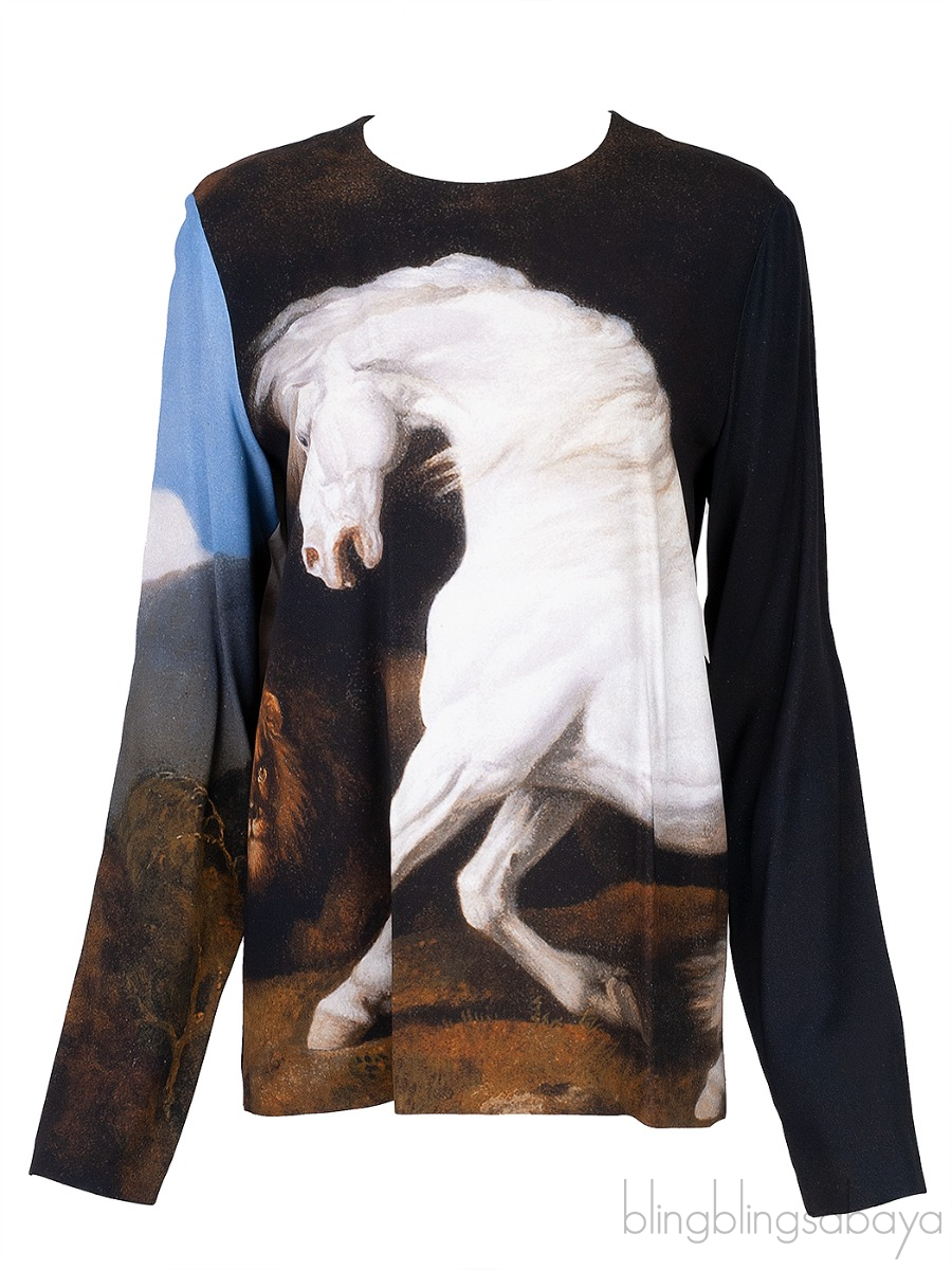 This Horse & Lion Printed Top from Stella McCartney is crafted from 95% Viscose and 5% Elastane in multicolor hue. This top features a round neckline, long sleeves, animal print at front, zip fastening at rear and long back.