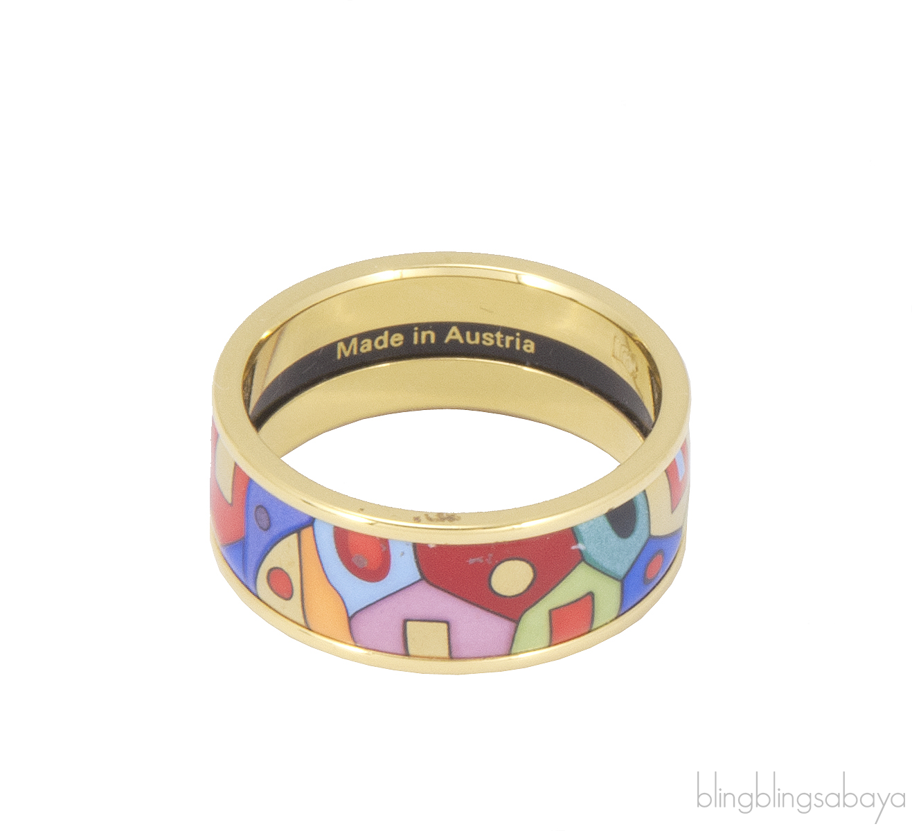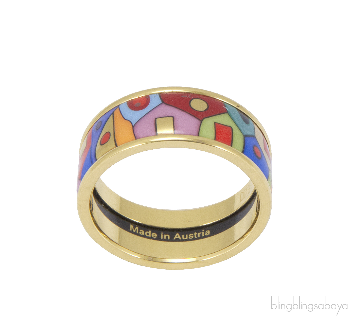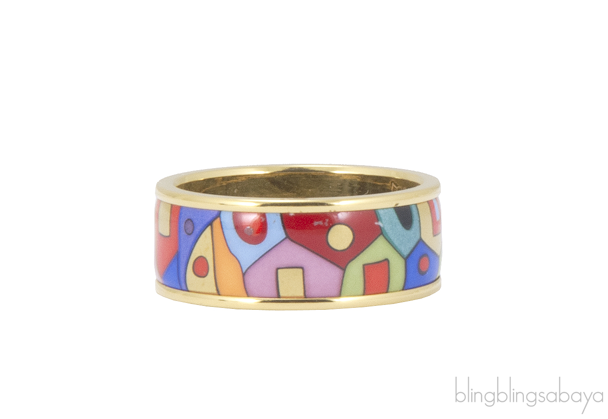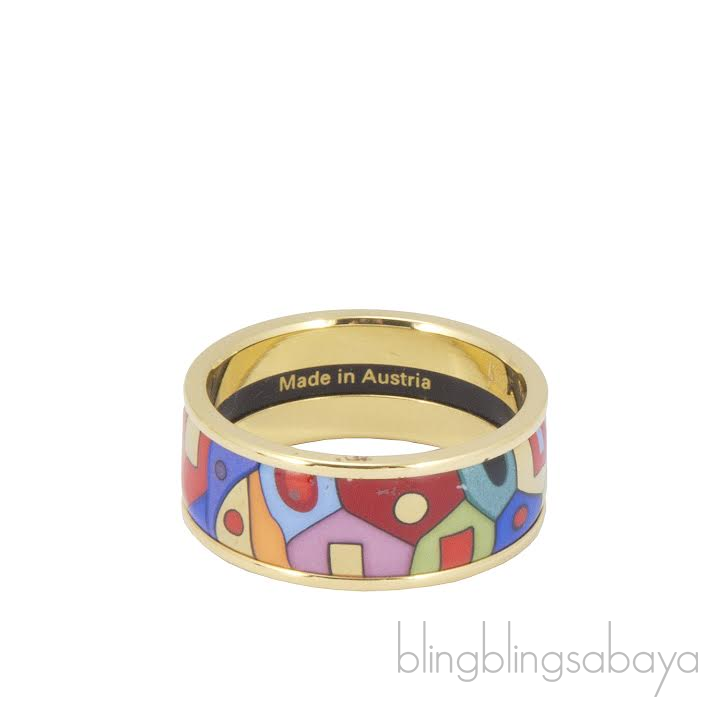 This Hundertwasser Multicolor Ring from Freywille is artfully crafted in 24kt gold plated ring with paradise sunlight inspired fire enamel surface.