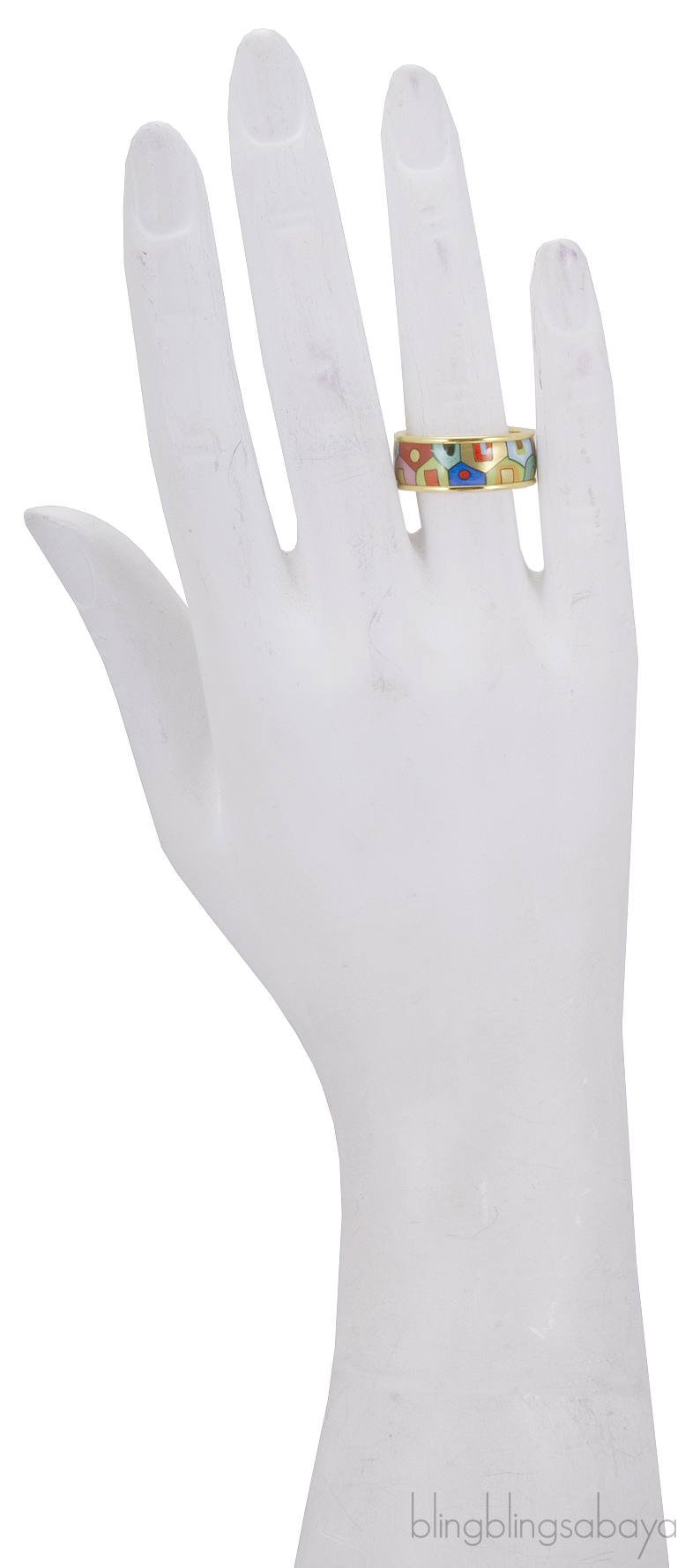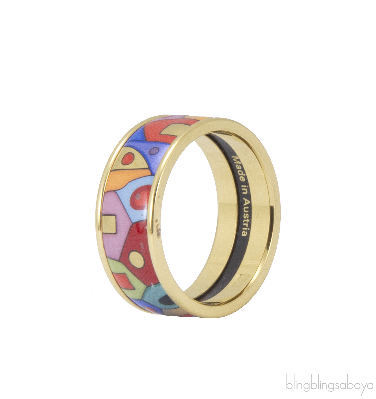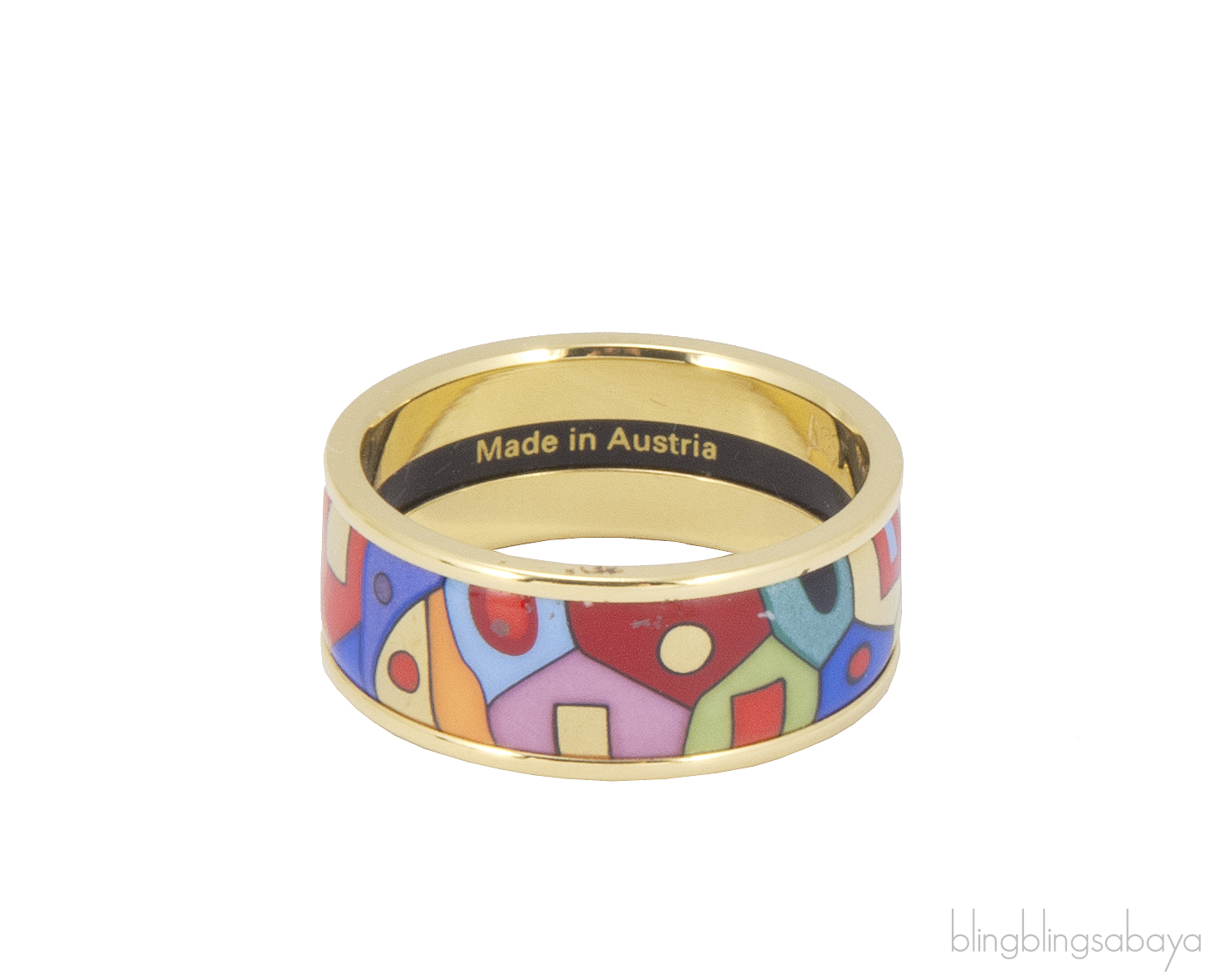 This Hundertwasser Multicolor Ring from Freywille is artfully crafted in 24kt gold plated ring with paradise sunlight inspired fire enamel surface.