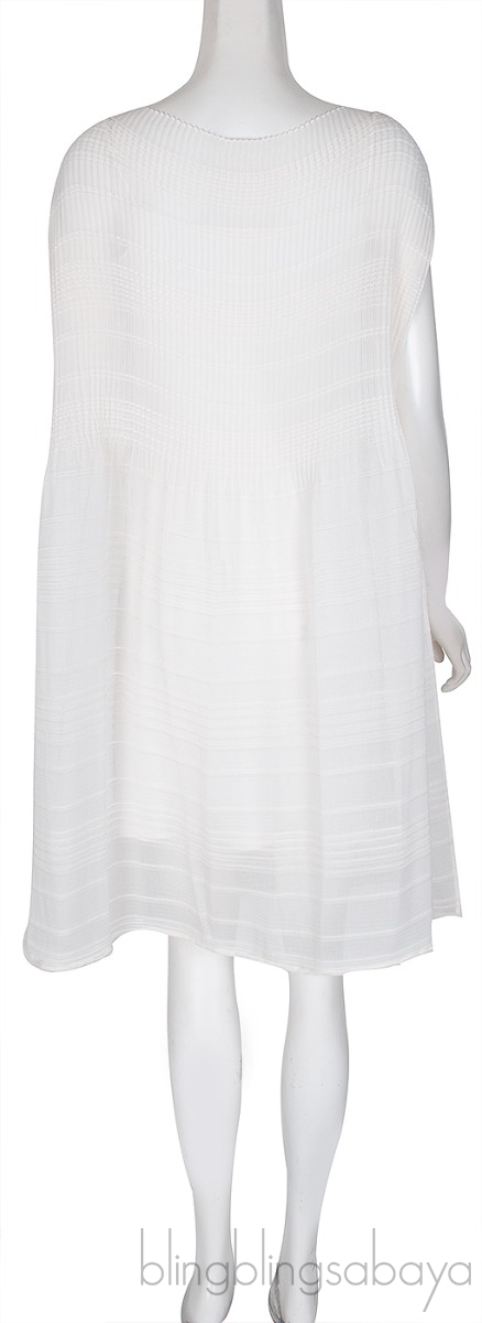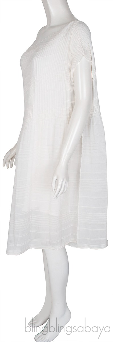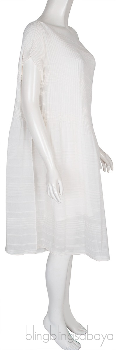 This Ivory Plisse Crepe Dress from The Row is crafted from ivory white plisséd bodice juxtaposed with horizontal pleats, it has a boat neckline and dropped cap sleeves and finished with pressed pleats and comes inner dress lining.