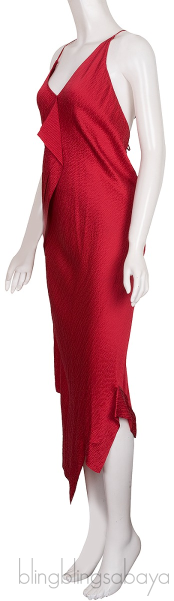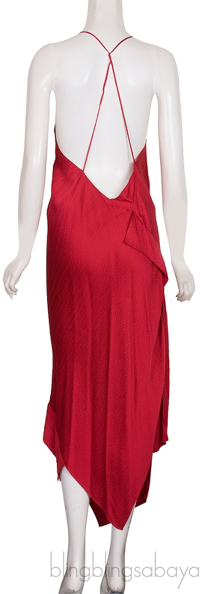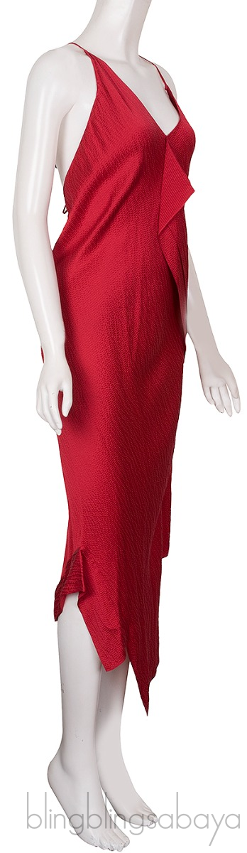 This Jimboy Asymmetric Hammered Silk-satin Midi Dress from Roland Mouret is crafted from 100% Silk fabric n red hue. This sexy dress features a v-neckline, spaghetti strap, open back and asymmetrical hemline.