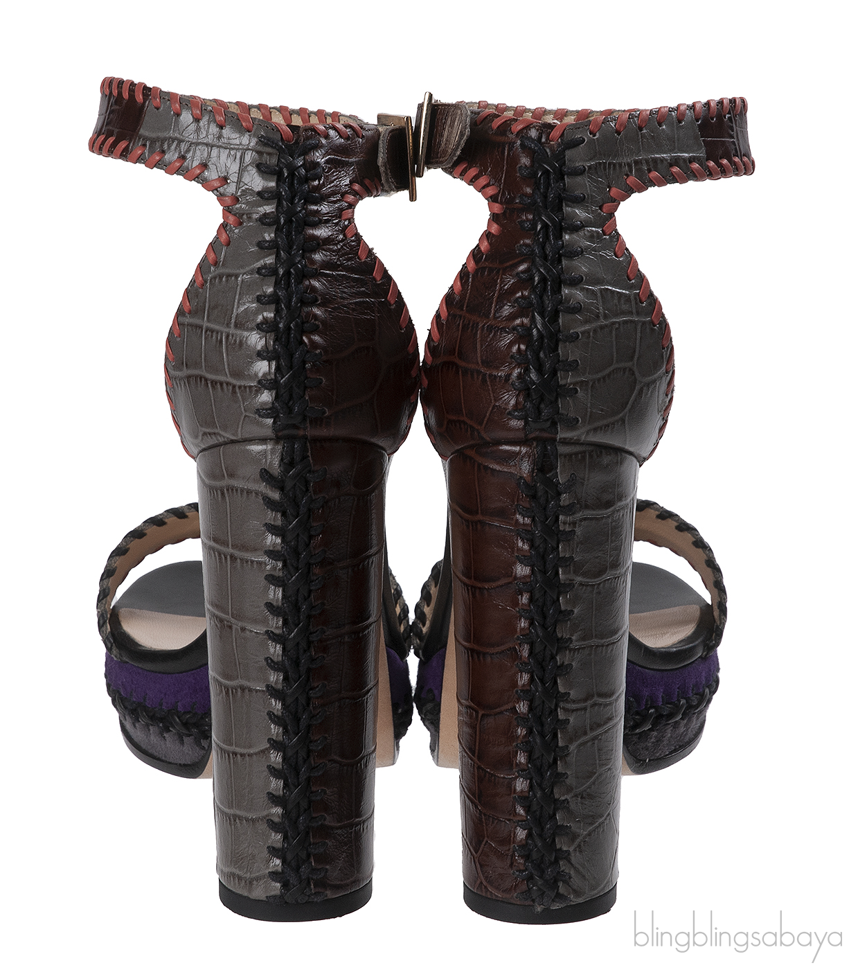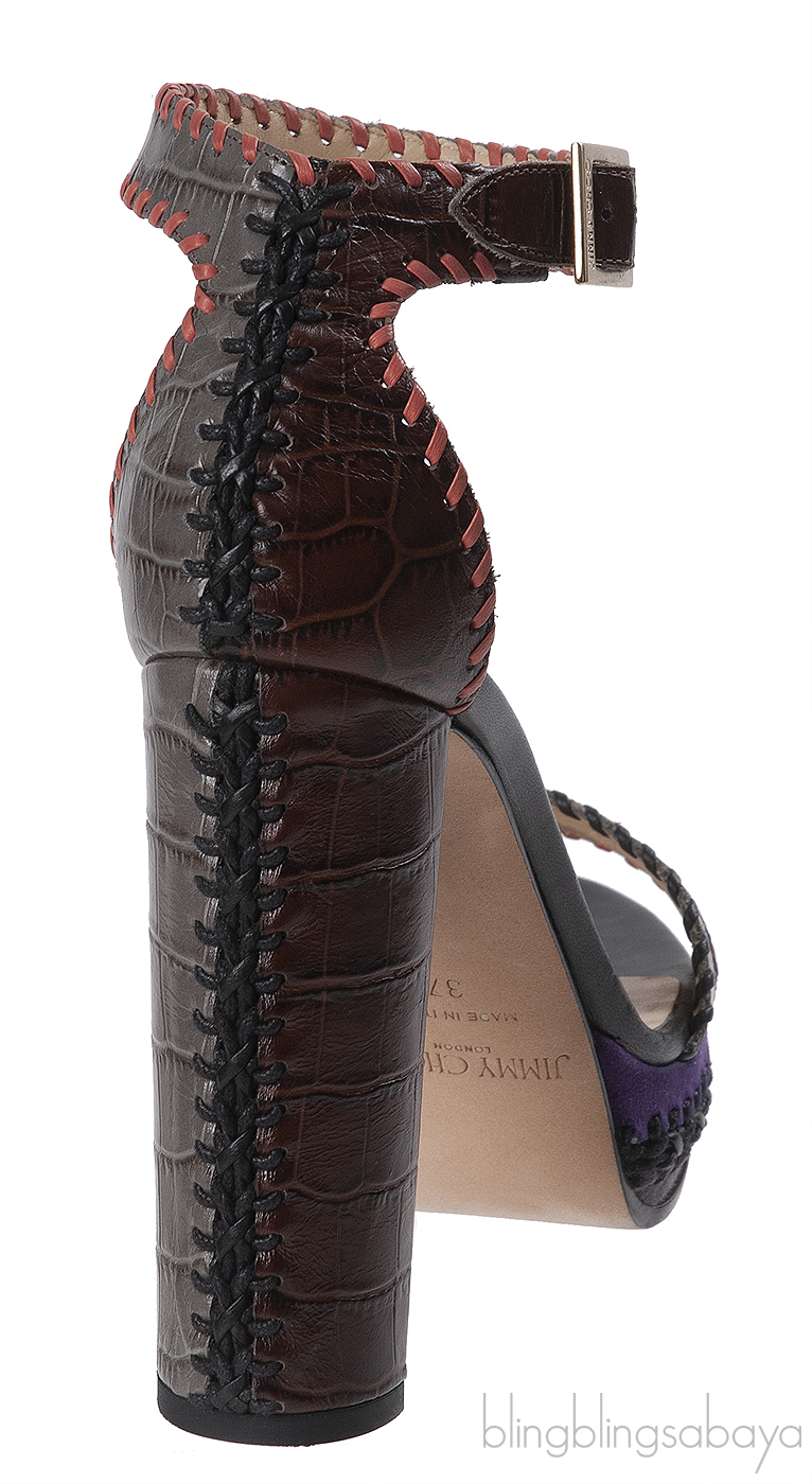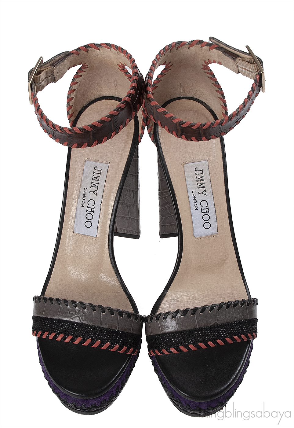 This pair of Jimmy Choo Multicolor Holly Intricate Plaform Sandals is crafted from croc-effect leather and soft suede trim. These sandals features a multicolor whipstitch detailing on the front and ankle straps, open toe, leather lined insole and sole and a distinctive chunky block heels measuring 120 mm high.