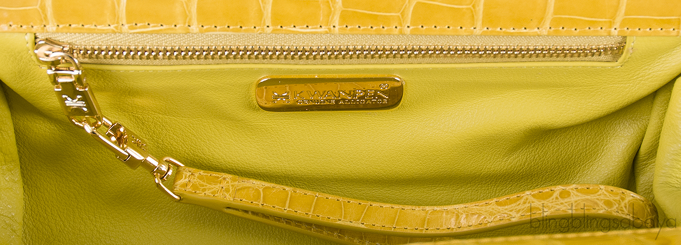 This Kwanpen KP Homage Trace Long Clutch from Kwanpen is crafted from yellow mustard exotic patent crocodile leather accented with the gold hardware.