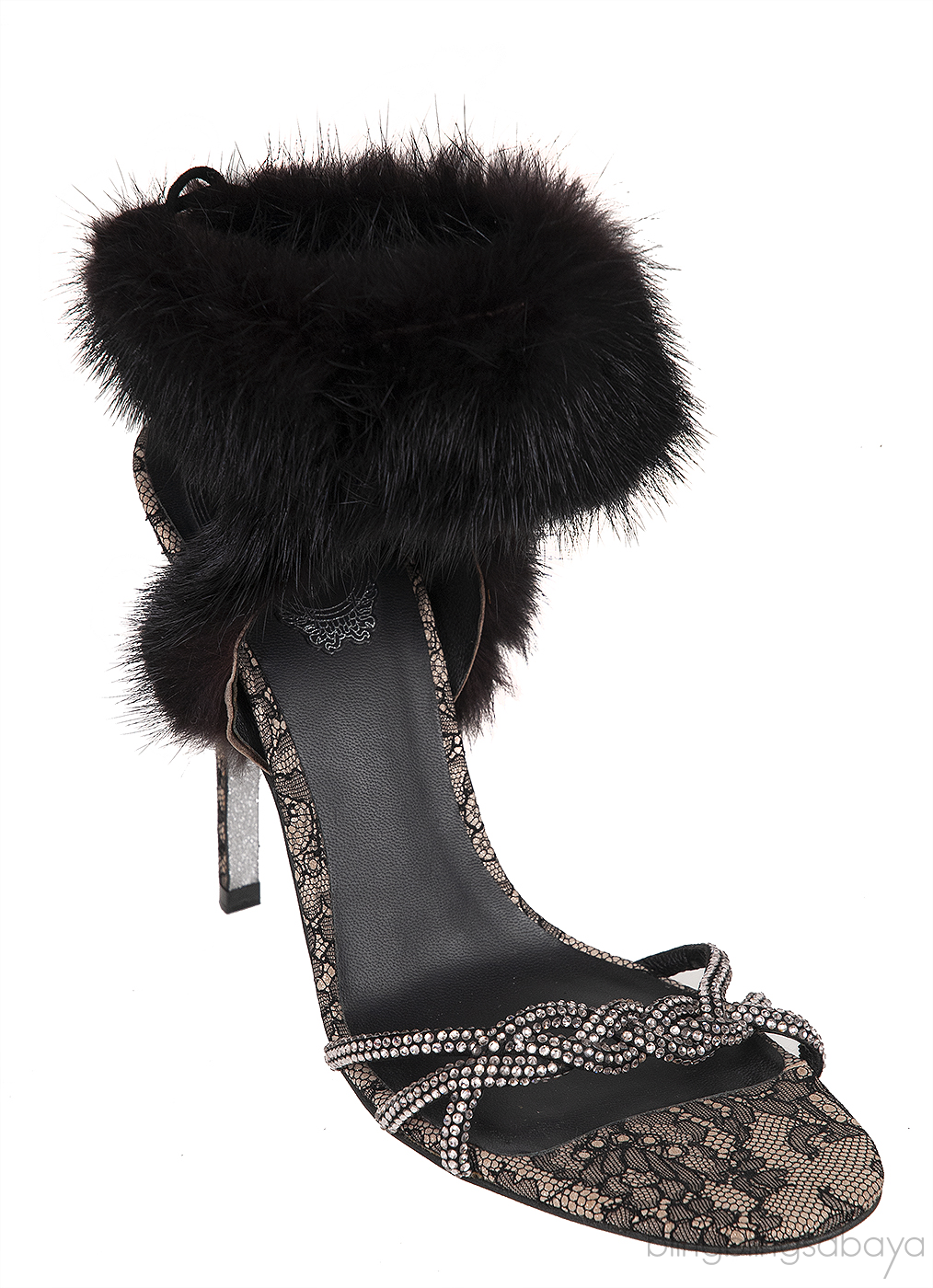 Lace and Fur Crystal Slingback Sandals from RENE CAOVILLA!