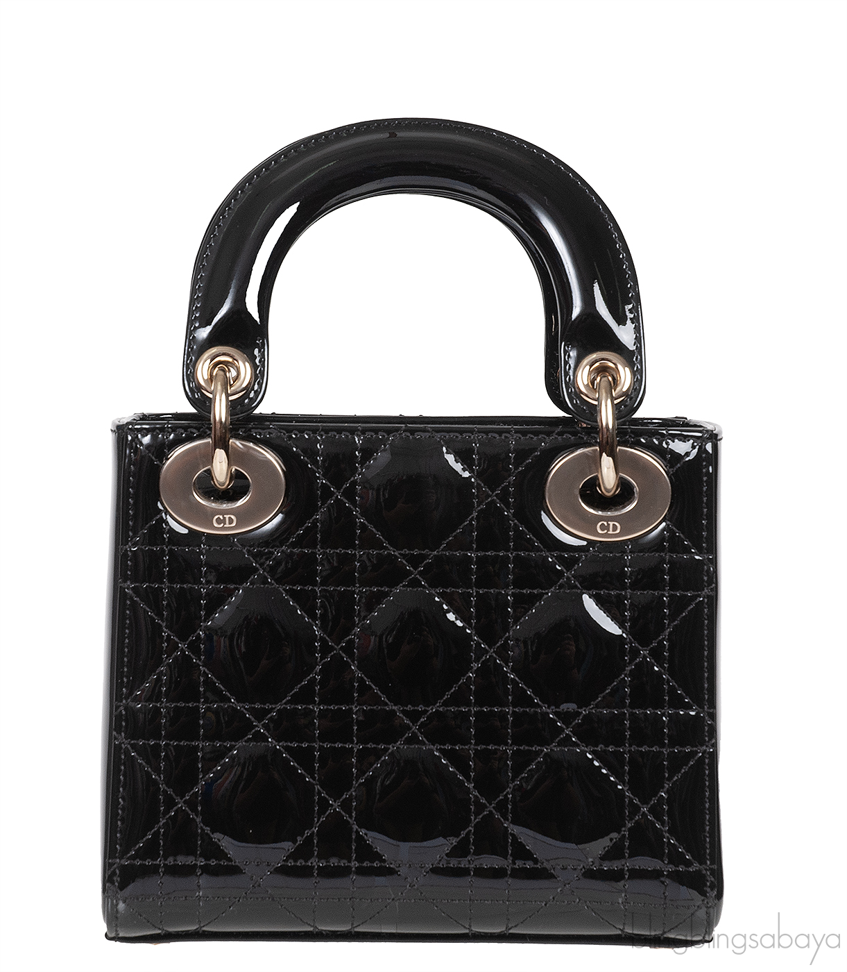 Lady Dior Mini Black Patent Quilted Leather GHW