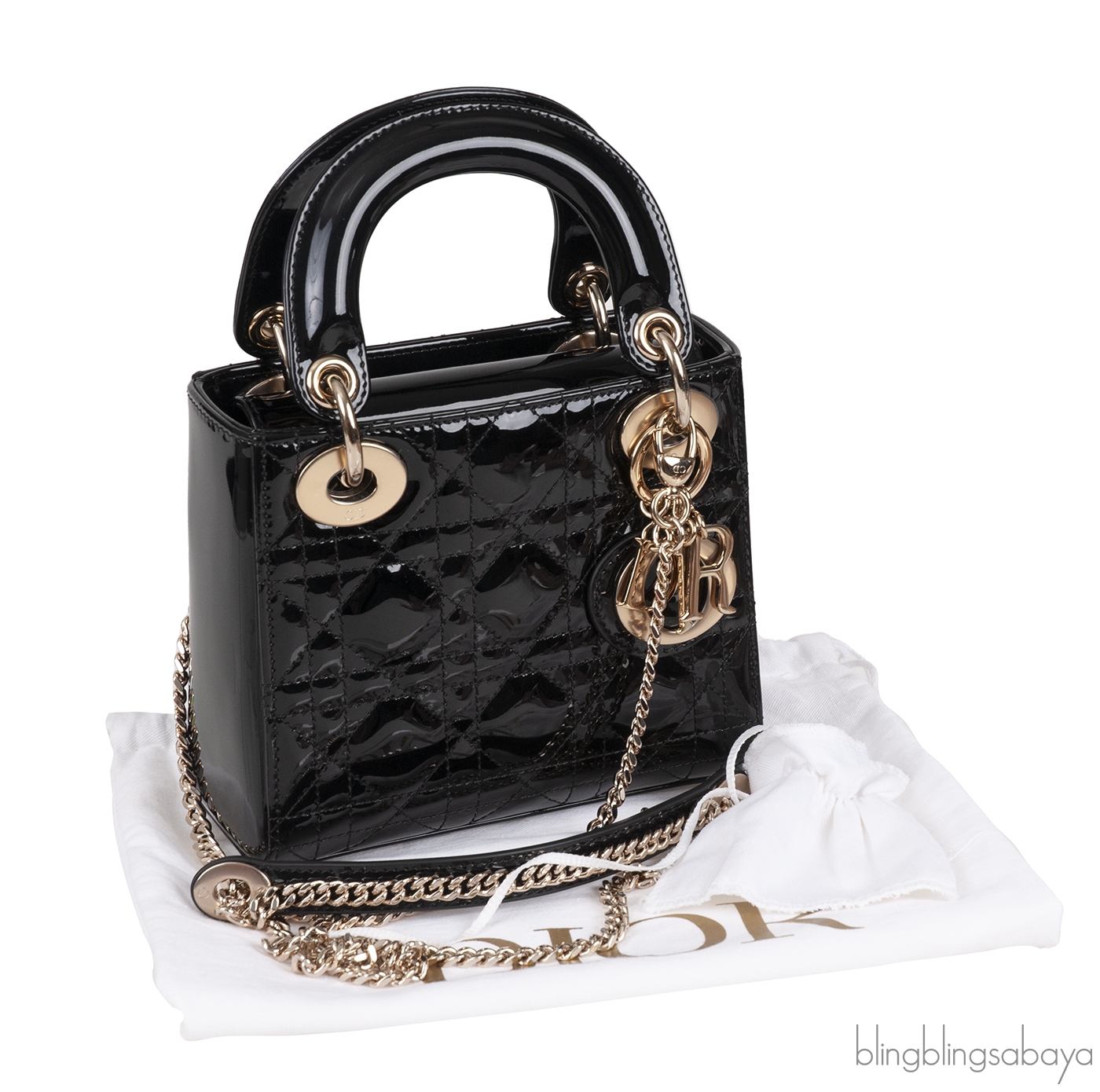 Lady Dior Mini Black Patent Quilted Leather GHW from Dior!