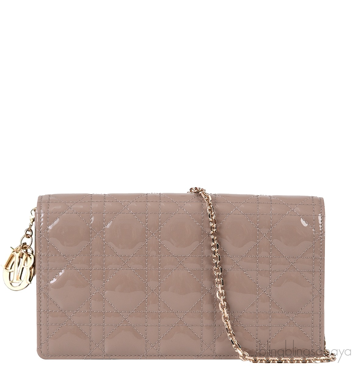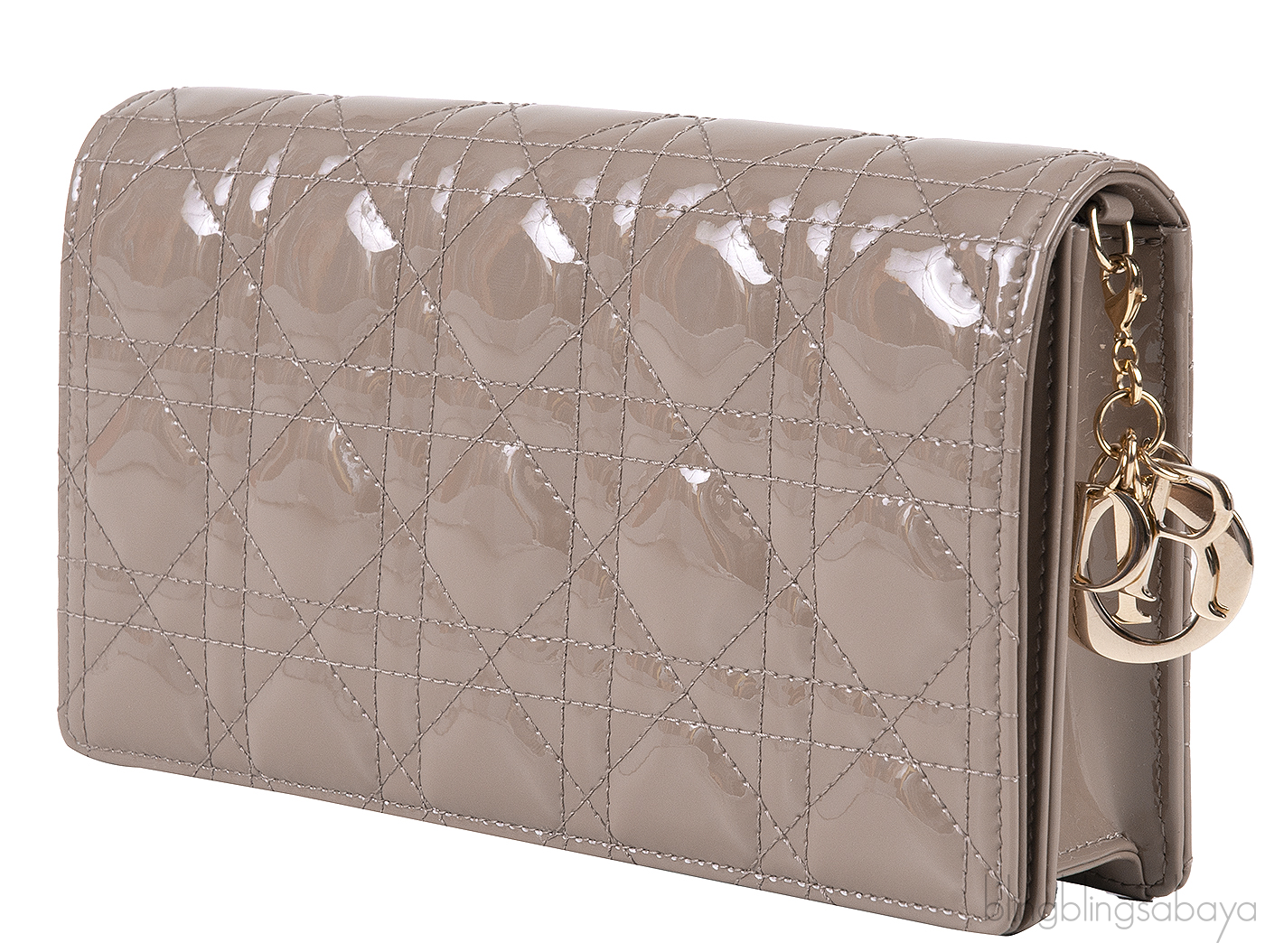 Lady Dior Pouch Warm Taupe Patent Cannage from Christian Dior!