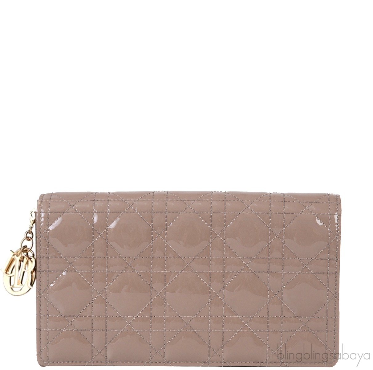 Lady Dior Pouch Warm Taupe Patent Cannage