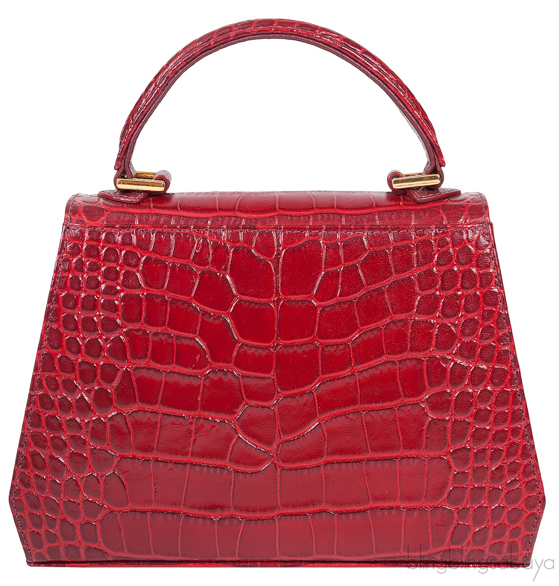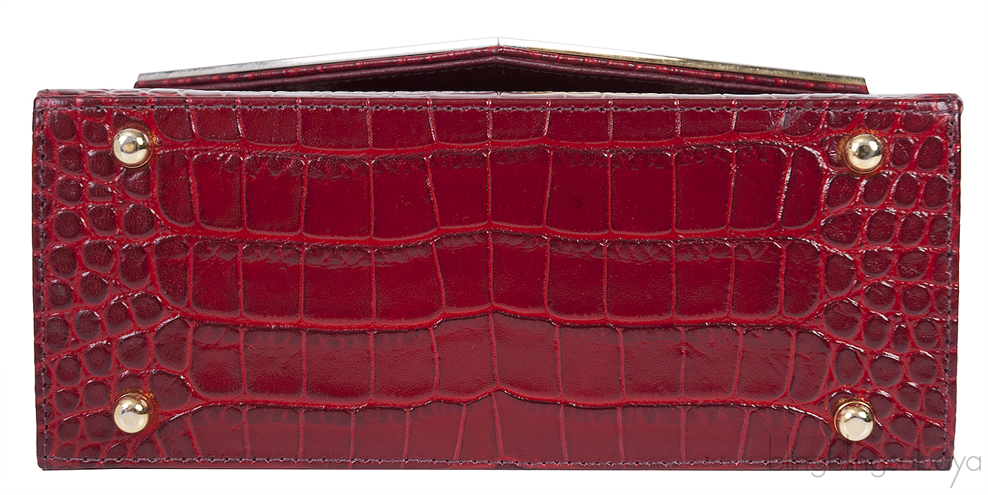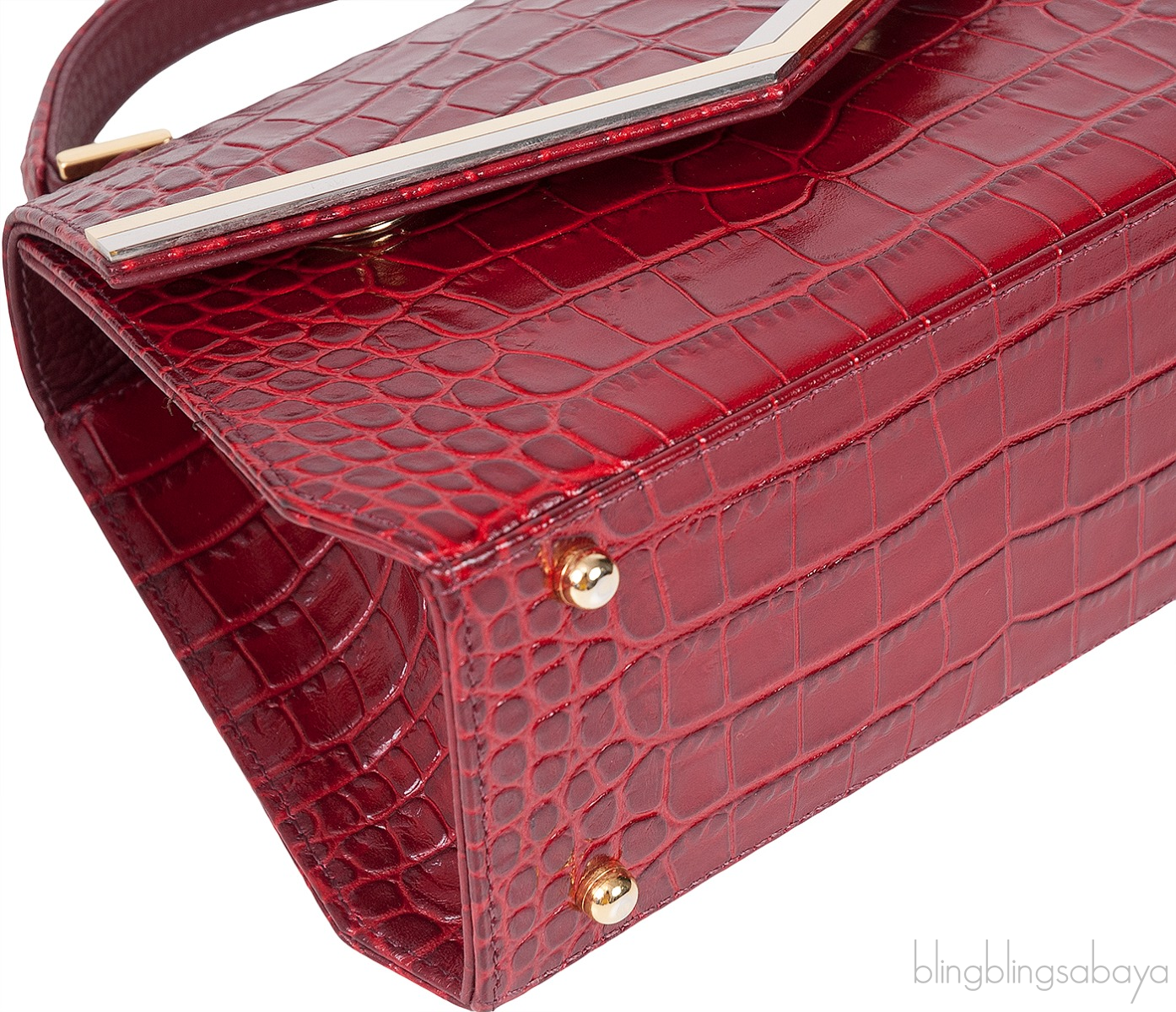 This Leia Red Croc Print Mini Bag from Rula Galayini is crafted from dark red crocodile print leather accented with gold hardware.