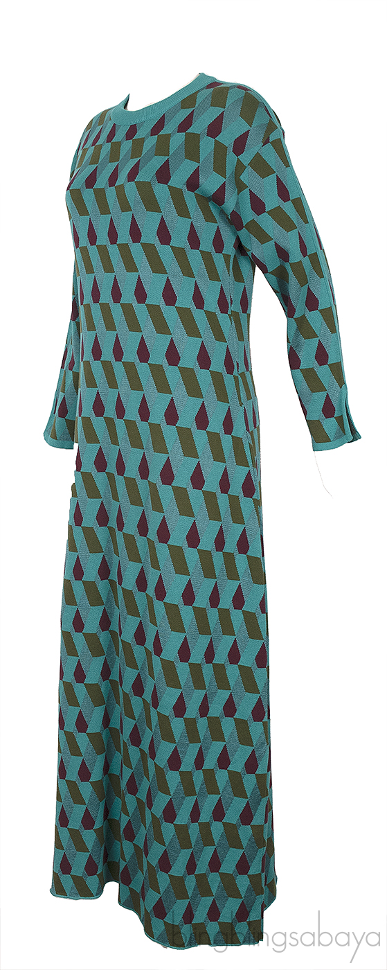 The Leisure Jacquard-Knit Cotton Blend Dress from La DoubleJ is crafted from a cotton-blend jacquard knit, offering a relaxed, slightly loose fit. It features a geometric pattern, a round neckline, long sleeves, and a flattering maxi length.
