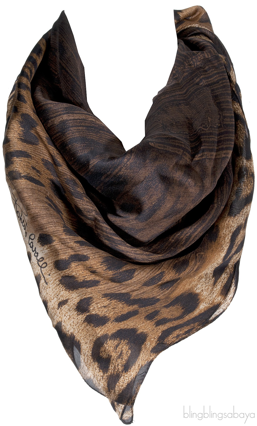 This Beautiful Scarf from Roberto Cavalli is made of Leopard Print and Brown Silk Voile. It's made of 100% Silk.