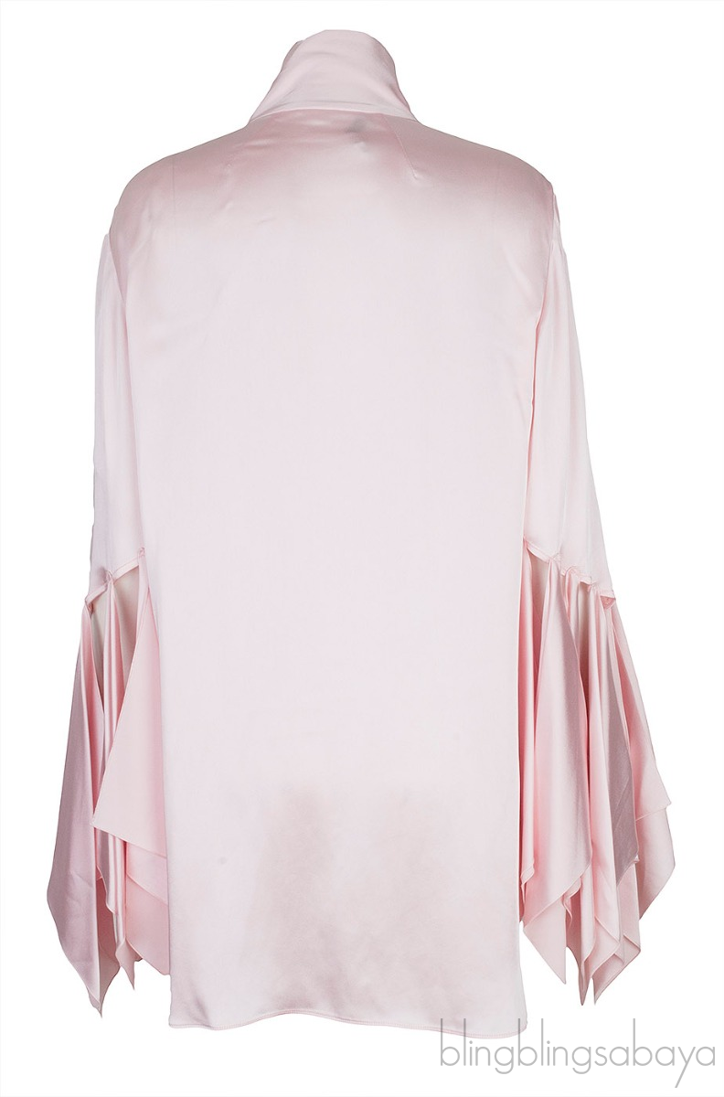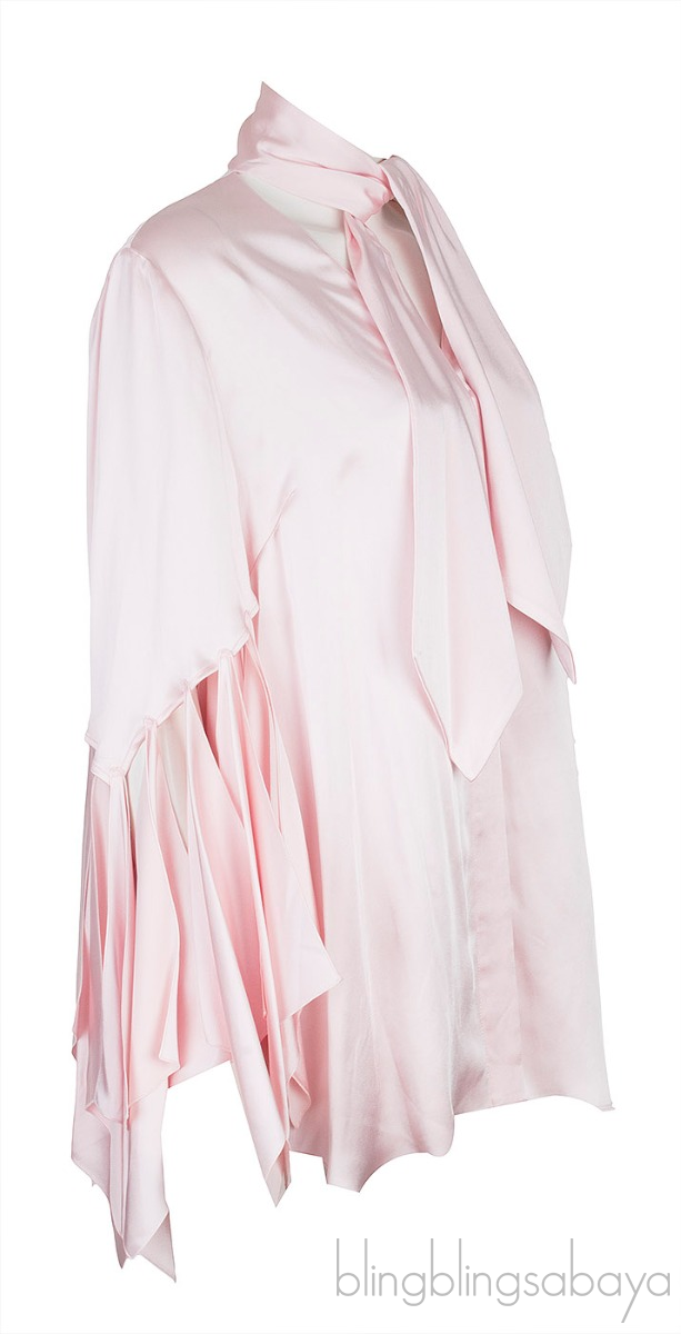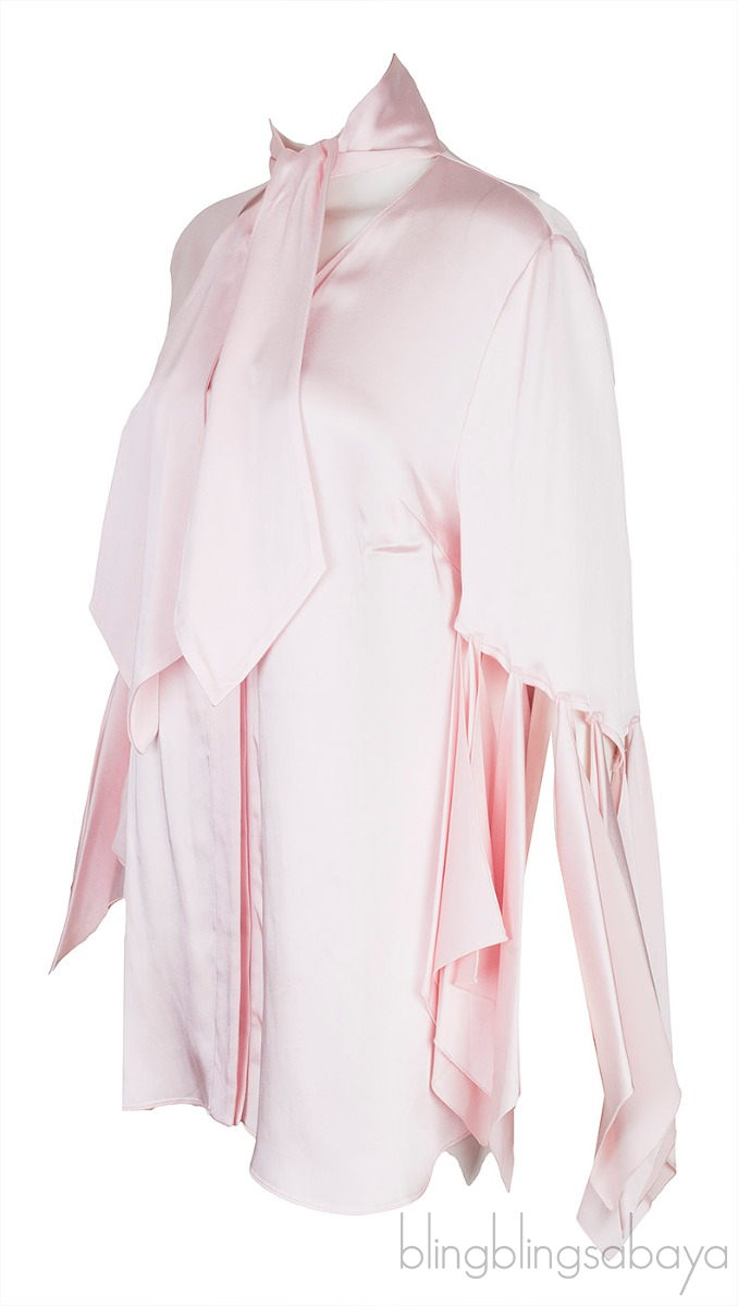 This Light Pink Satin Blouse from Crhistopher Kane is crafted from 60% Acetate, 40% Viscose in light pink hue. This blouse features a front closure, button closing, long sleeves, bow collar, no pockets.