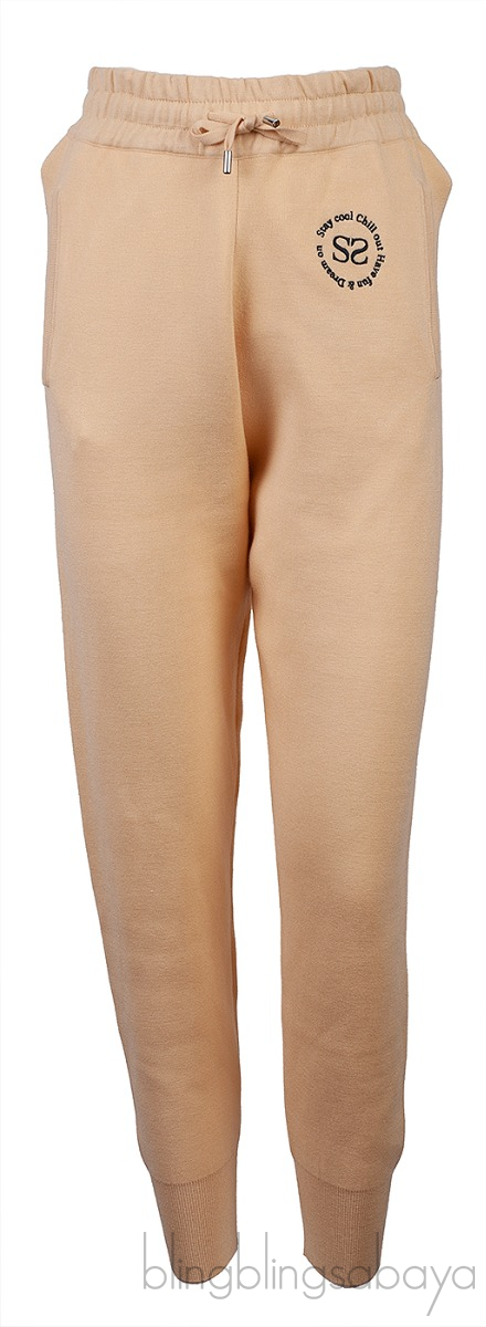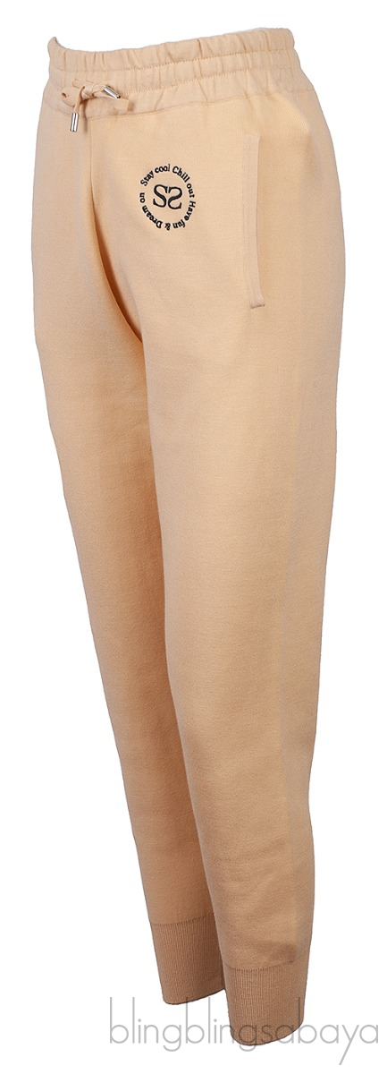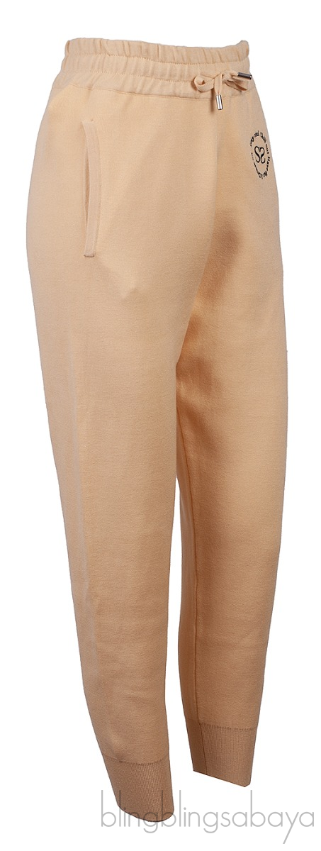 This Light Yellow Knit Jogging Bottom from Sandro is crafted from 45% Algodon, 32% Viscose, 13% Polyester and 10% Polyamide in light yellow featuring an elastic waist line with drawstring fastening, pockets at front, embroidery in black andhas ribbed hemline.