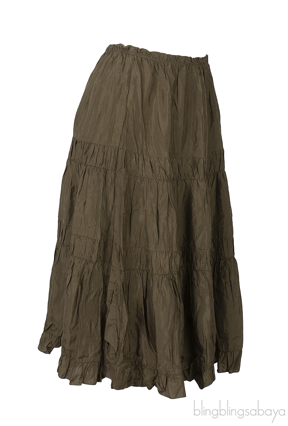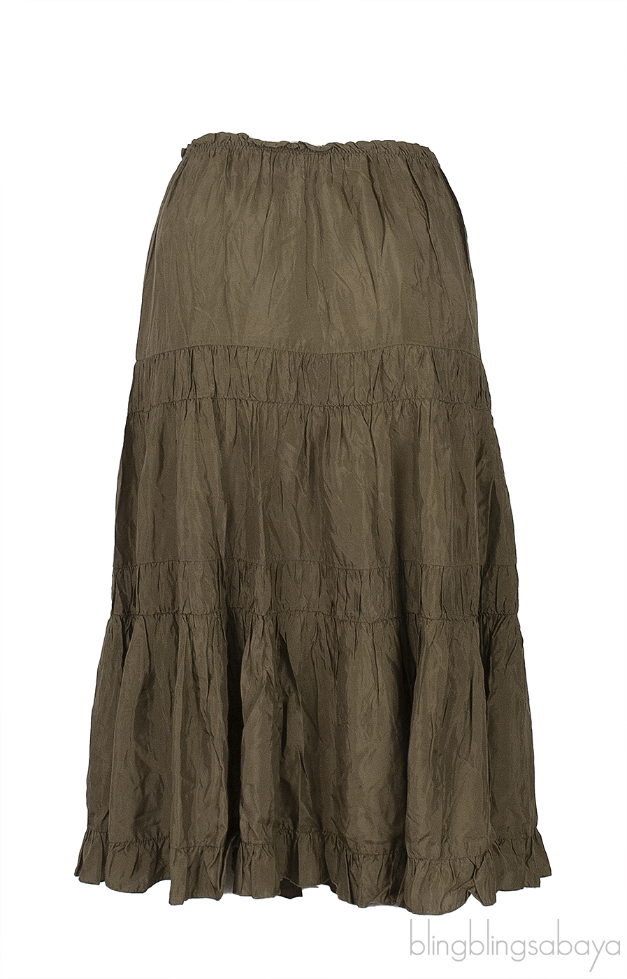 This Lightless Khaki Skirt from See by Chloe is crafted from 100% Viscose in khaki hue. This skirt features a very light fabric wit elastic waistline, tiered design with ruffled hemline.