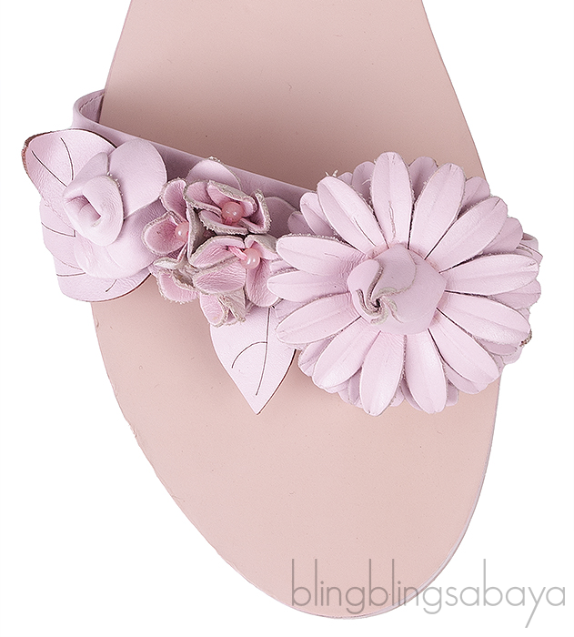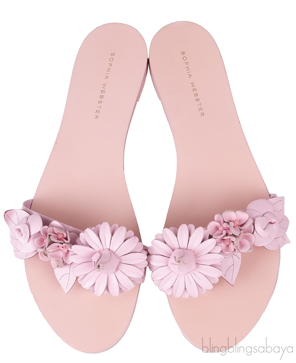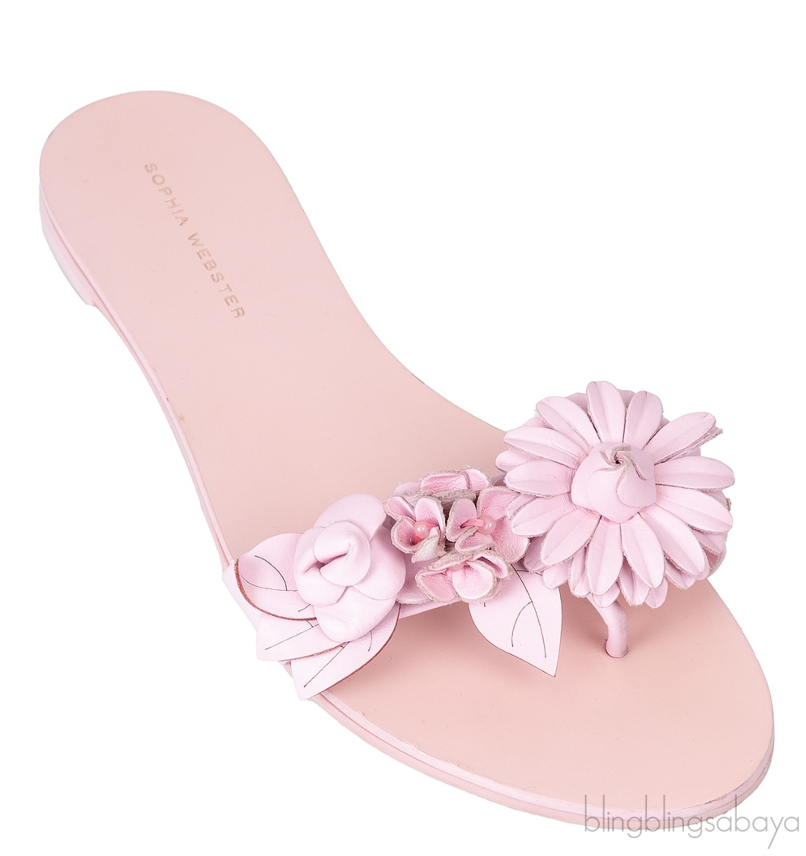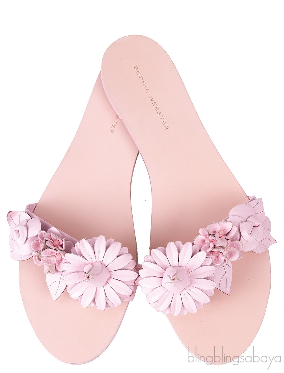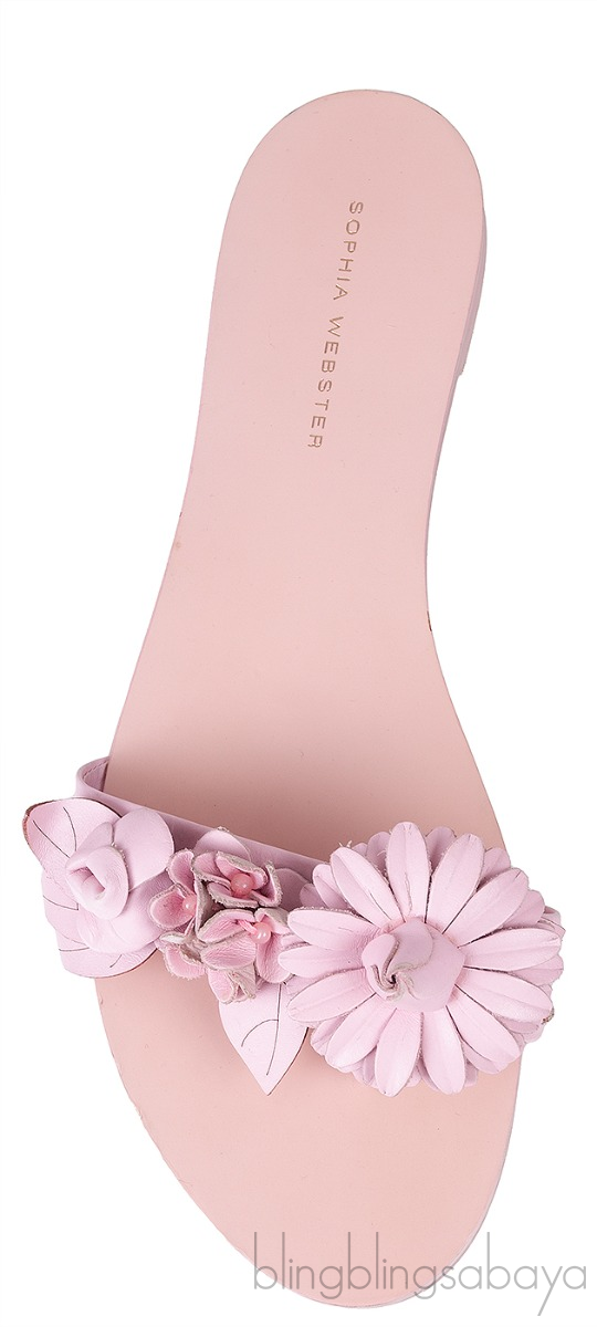 These pair of Lilico Appliquéd Light Pink Leather Sandals from Sophia Webster are crafted in light pink leather decorated with intricate floral appliqués, Leather lining and sole. Slip on style.