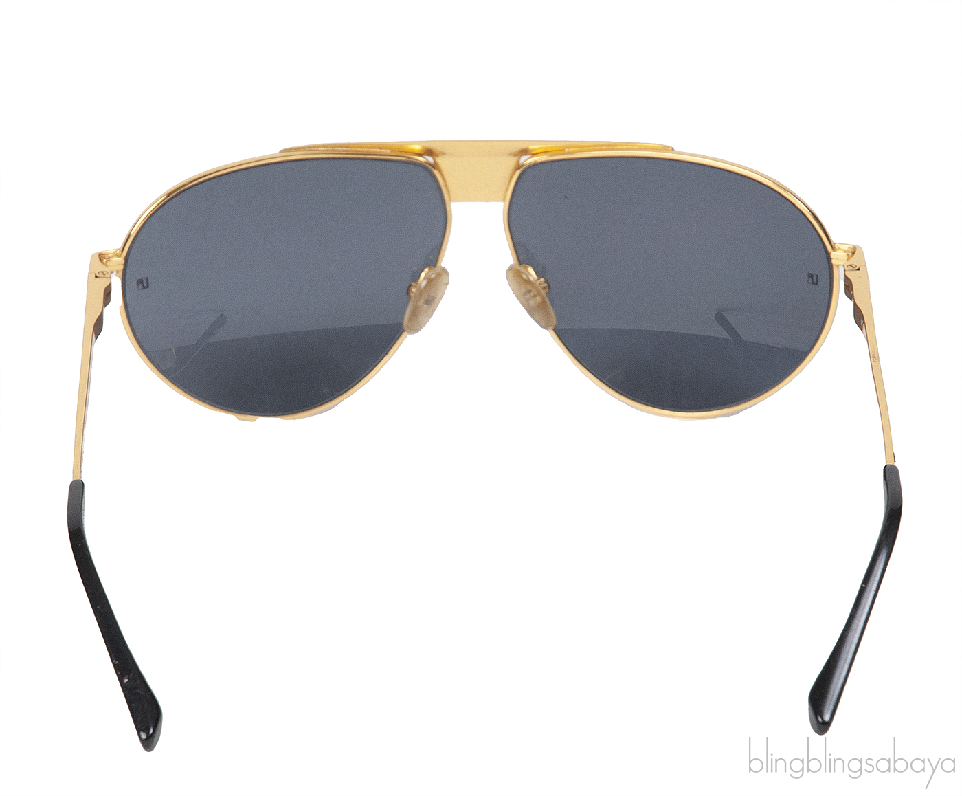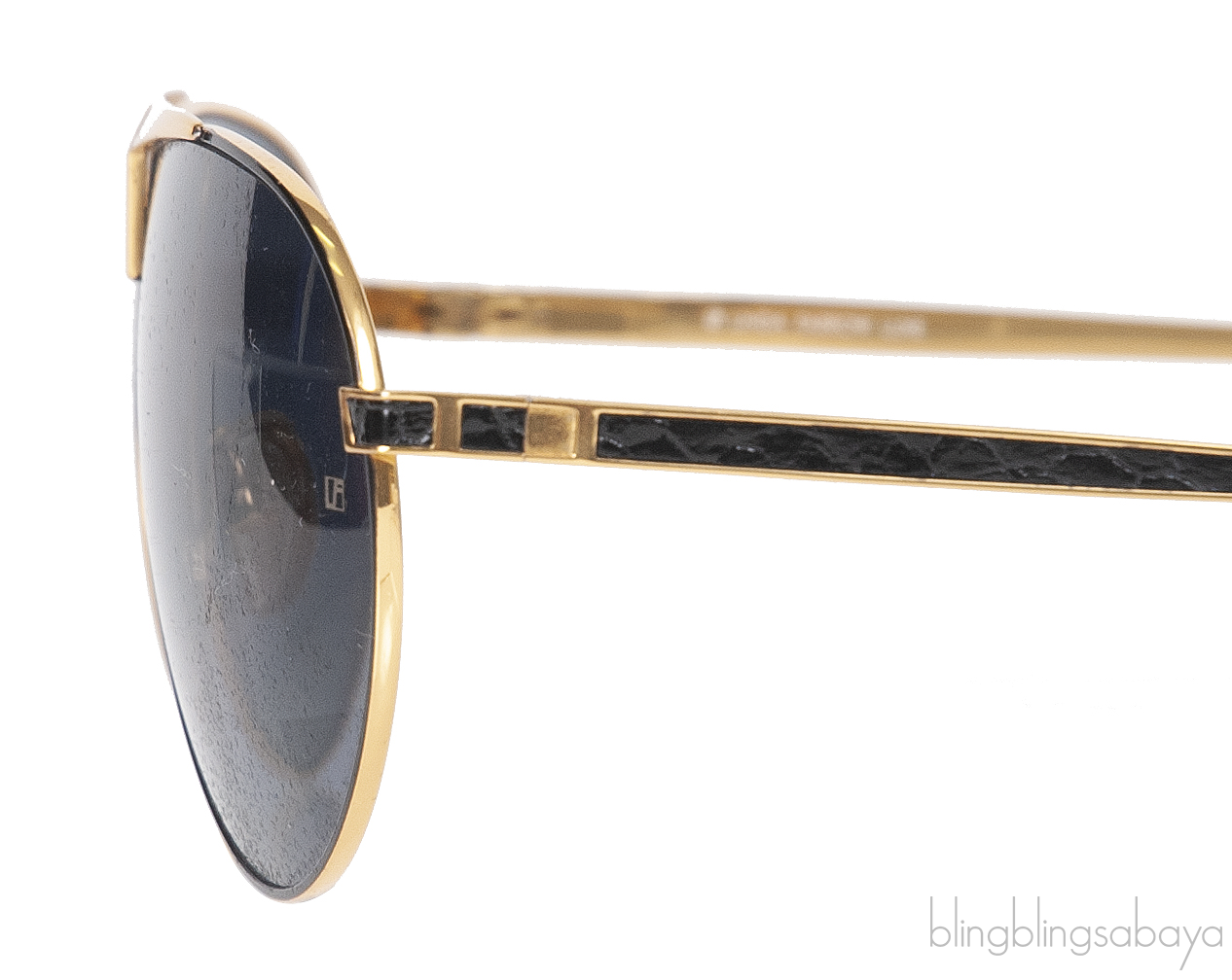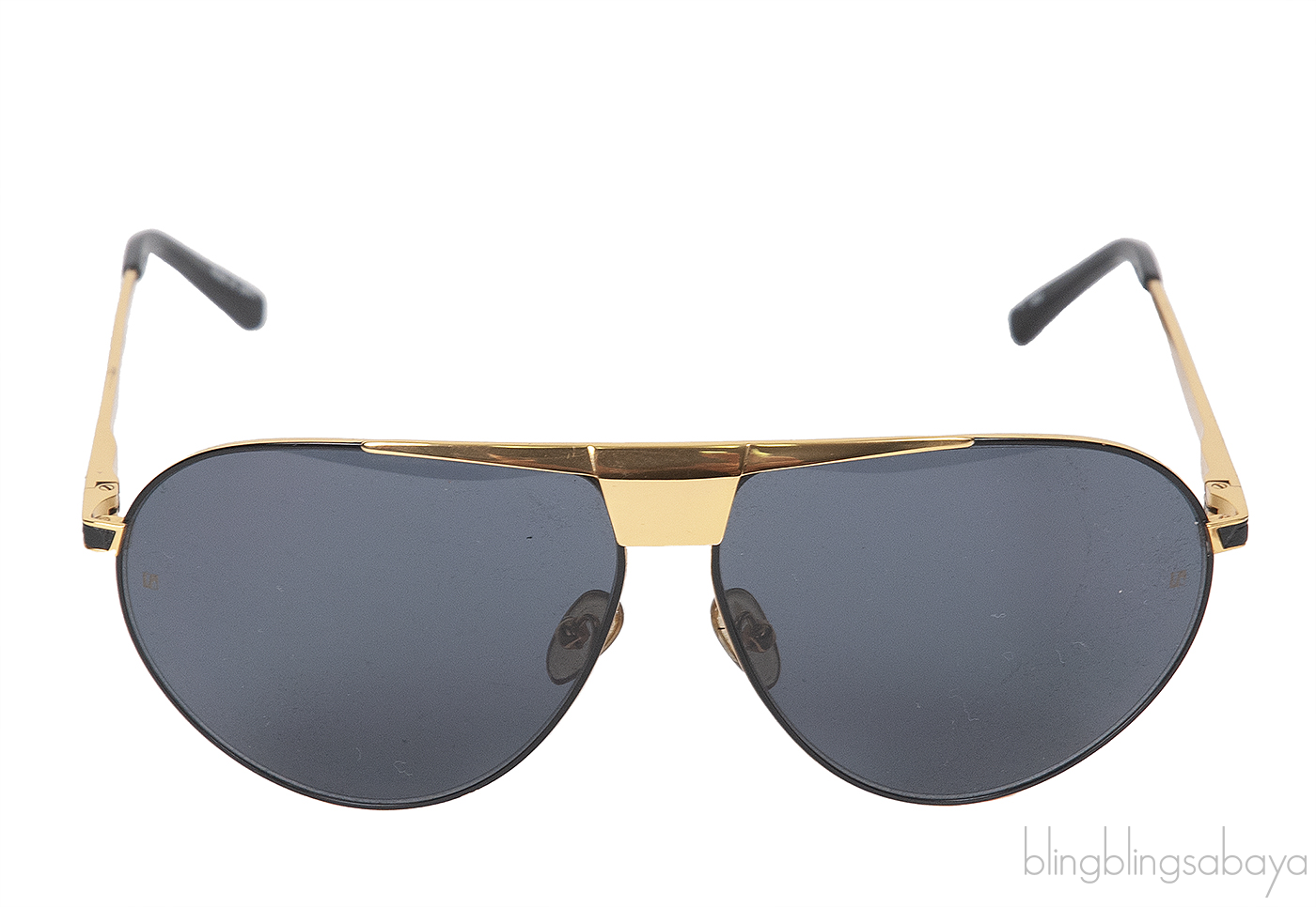 This Luxe LFL461 Black & Gold Sunglasses from Linda Farrow's Vintage Gold Collection features a gold aviator frame, hands with black acetate temple tip, nose pads and black lenses.